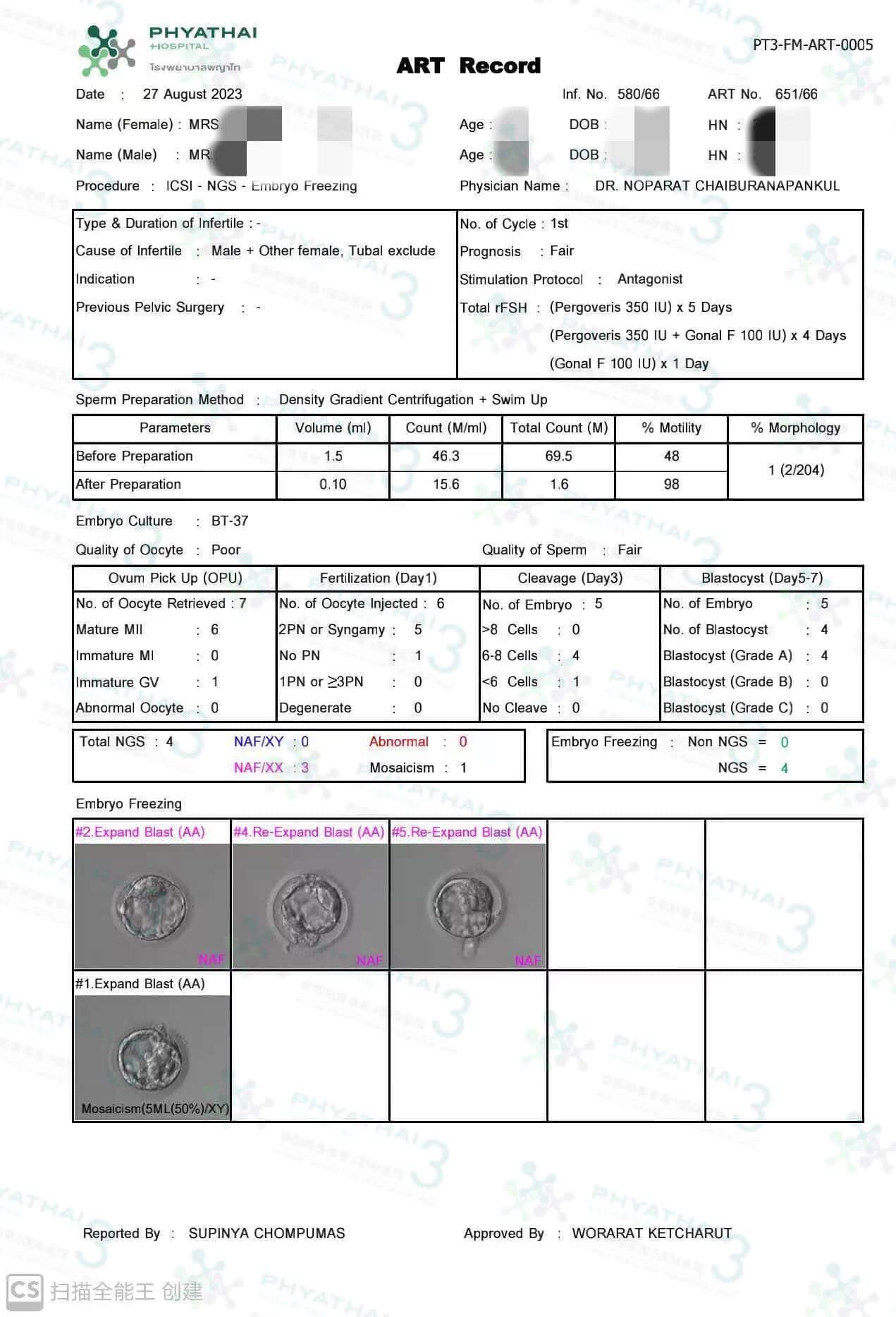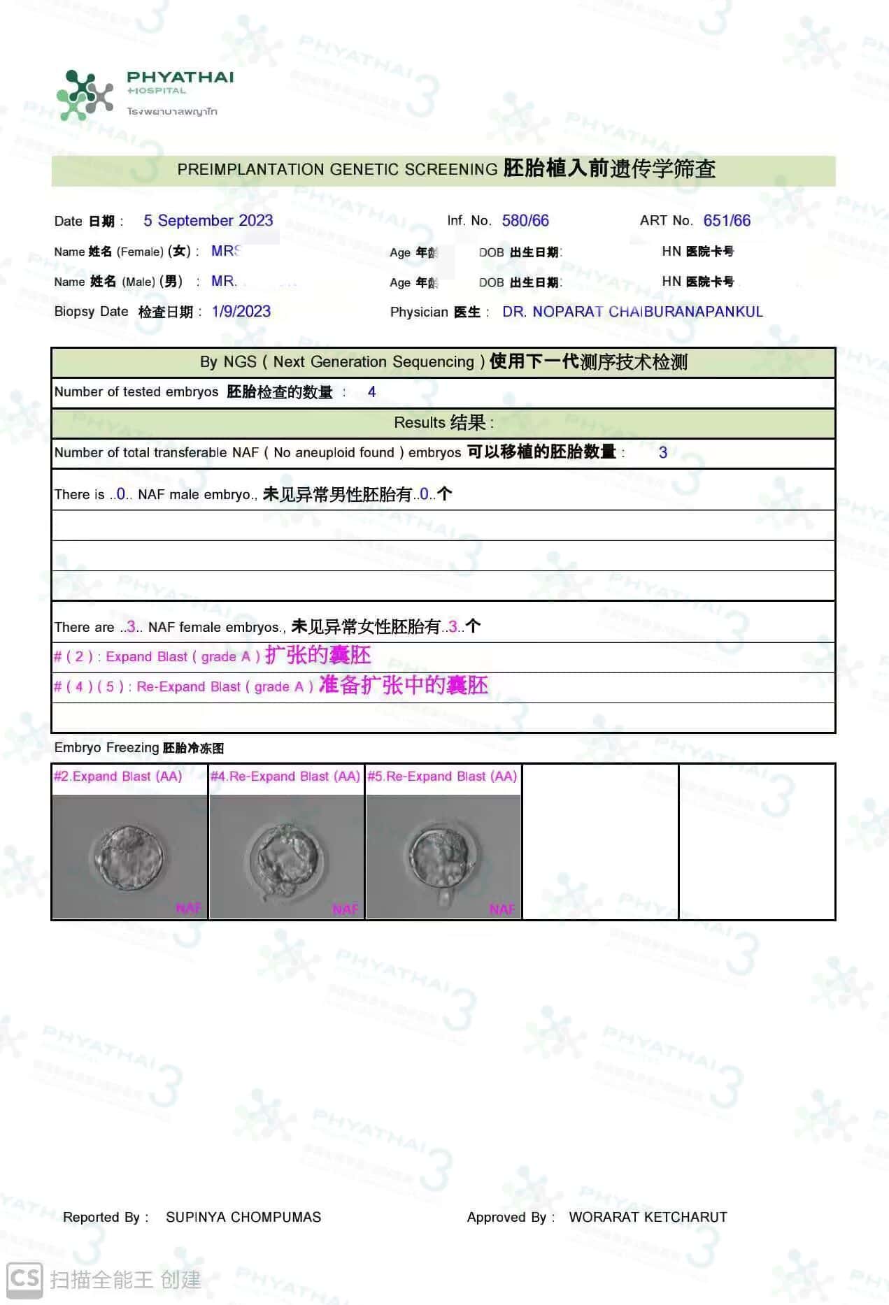 真的是被老天眷顾的患者,早衰+卵子质量下级,超级幸运5养4全部AA级别。染色体报告出来啦!3枚健康小粉可移植。一直心心念念的小公主终于等到啦。这下可以安心啦,准备好了随时赴泰来接娃哈