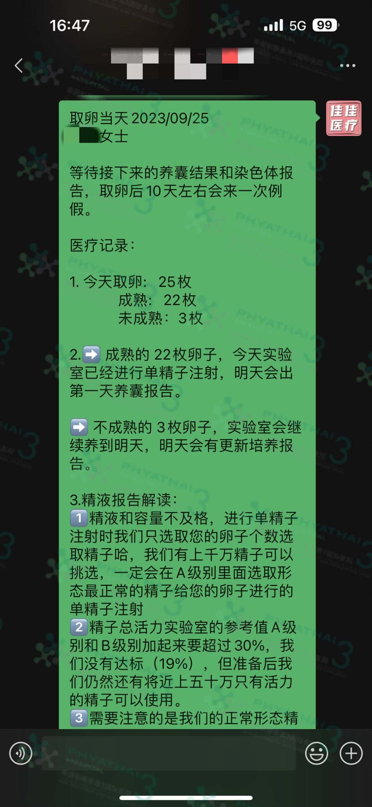 M医生促排王又来啦!安排的促排药牌子跟剂量算得准准,为了能够取到最多成熟卵子数量,在最后一次见诊时,医生再加把劲安排打小剂量,果纳芬50单位,取卵当天真的是出所预料之中,既然取了25枚当天成熟22枚,这个成熟度真是绝了。希望多多成囊胚都是健康宝宝哦