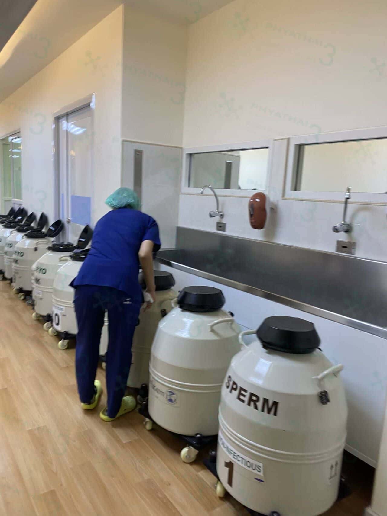 哈喽 今天我带大家一起来看看 胚胎宝宝们入住新家啦 ~ 帕3 的实验室在6 楼, 今天实验室超级热闹,外面有冷冻箱放满了等待保存的胚胎。做第三代试管从养囊送筛后,才把胚胎冷冻冷冻起来。 从名字就能看出来是经过冷冻的胚胎等待移植。 我们移植的时候医生建议最多只移植两枚胚胎, 其余的胚胎就放到-196 °c 的液氮中冷冻起来。 我们的冷冻箱符合世界各地的国际标准。所以不用担心安全问题了噢。
