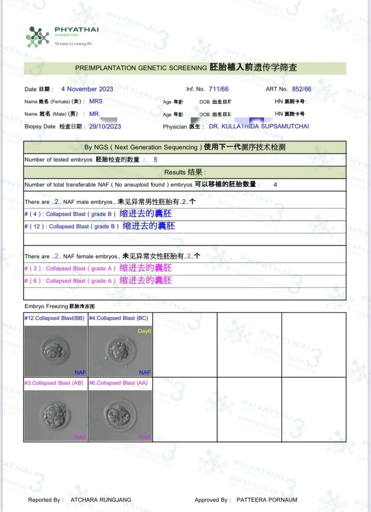 帕3实验室就是牛!小姐姐在国内做过试管因为质量不太好加上卵子透明带硬所以受精养囊操作难度高,在国内试管最终没有胚胎可移植 小姐姐这次来很担心会再次面对失败,胚胎染色体报告出来后发现有2对健康可以移植的小蓝和小粉!太牛了 帕3实验室太给力了,真的是爱了爱了