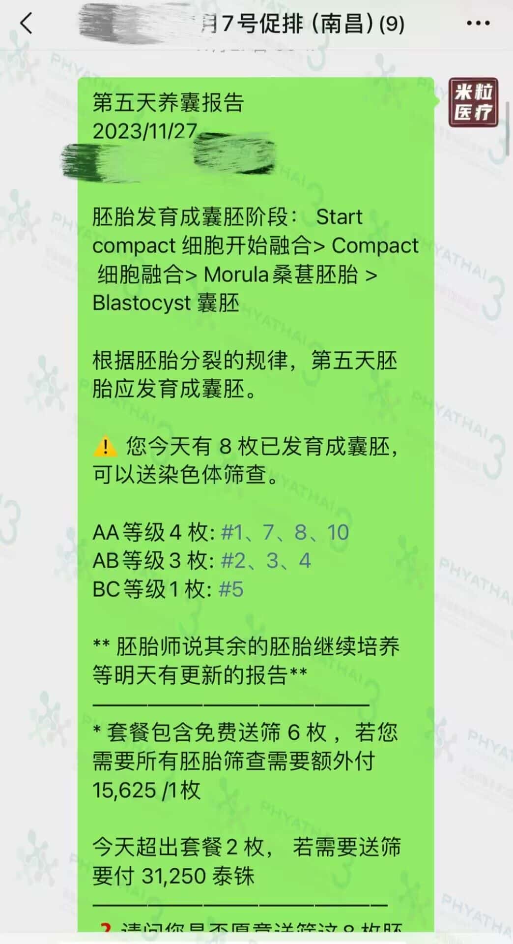 养囊送筛一路绿灯~小姐姐染色体报告出来啦~送筛8枚 染色体全部健康蓝宝5个、粉宝 3个,实验室太厉害啦。小姐姐单精子注射成功10枚,养囊成功8枚 都是A和 B 等级呢,送筛也顺顺利利,小姐姐太开心了,接下来等准备好就过来接小王子回家啦,二胎小王子明年见噢~