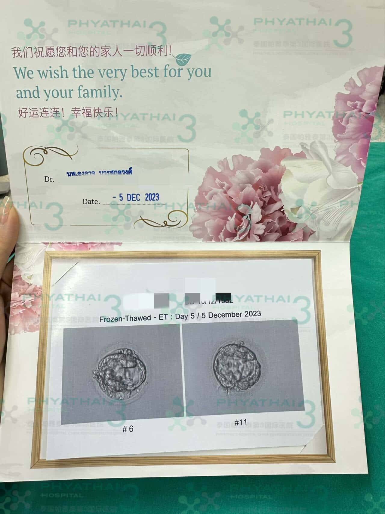 移植就短短几分钟时间,却也是各位姐妹们最紧张的时刻,来自金边的家庭今天移植,过程中小姐姐一动不动很是配合,胚胎顺利进入宫腔后我和小姐姐说完成了,小姐姐说啊我都没看到胚胎呢,在哪呢,我说胚胎很小很小肉眼是看不到的,小姐姐就拿着医生给的照片看了很久很久后说希望一次顺利,下次再来接二胎。