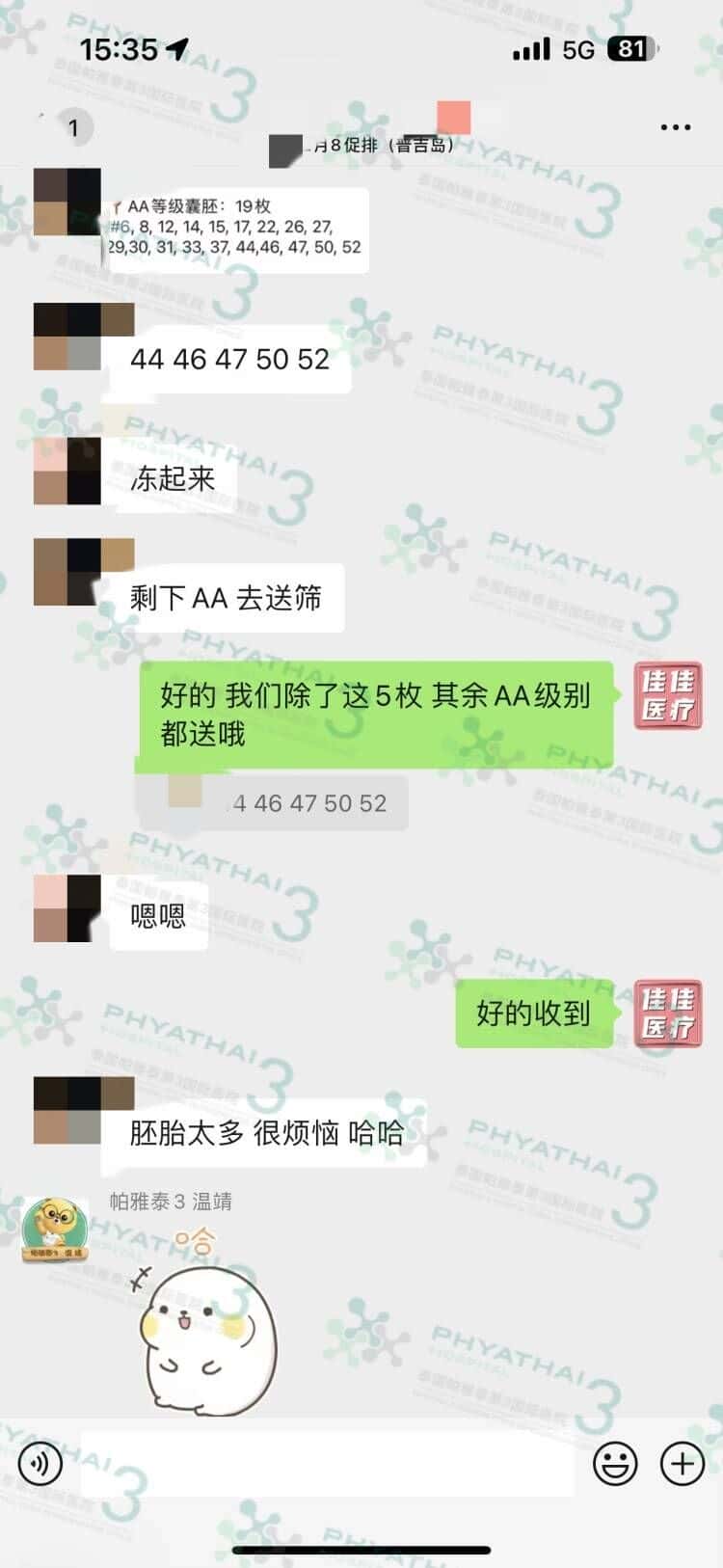 卵多的困扰,小姐姐身体健康,备孕2年一直没怀上宝宝,身体检查后发现有一侧输卵管不通畅,于是经过在网上跟亲自考察后选择了帕3,结果不让人失望从受精卵成功的41胚胎,第五天成囊30枚,结果太棒了,小姐姐看到结果后需要跟先生商量一下,因为他就想生2个小孩,胚胎多的困扰真是令人羡慕呀~