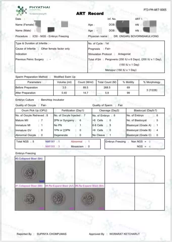 哇哇哇!送5得4 太牛了 AMH1.4家庭第五天养囊有5枚成囊胚可以送筛染色体检查,今天结果出来非常不错,有4枚正常胚胎可以移植呢。接下来等您回来移植了哦,这段时间先调养好身体 保持身体健康准备移植,第二轮月经见哈。