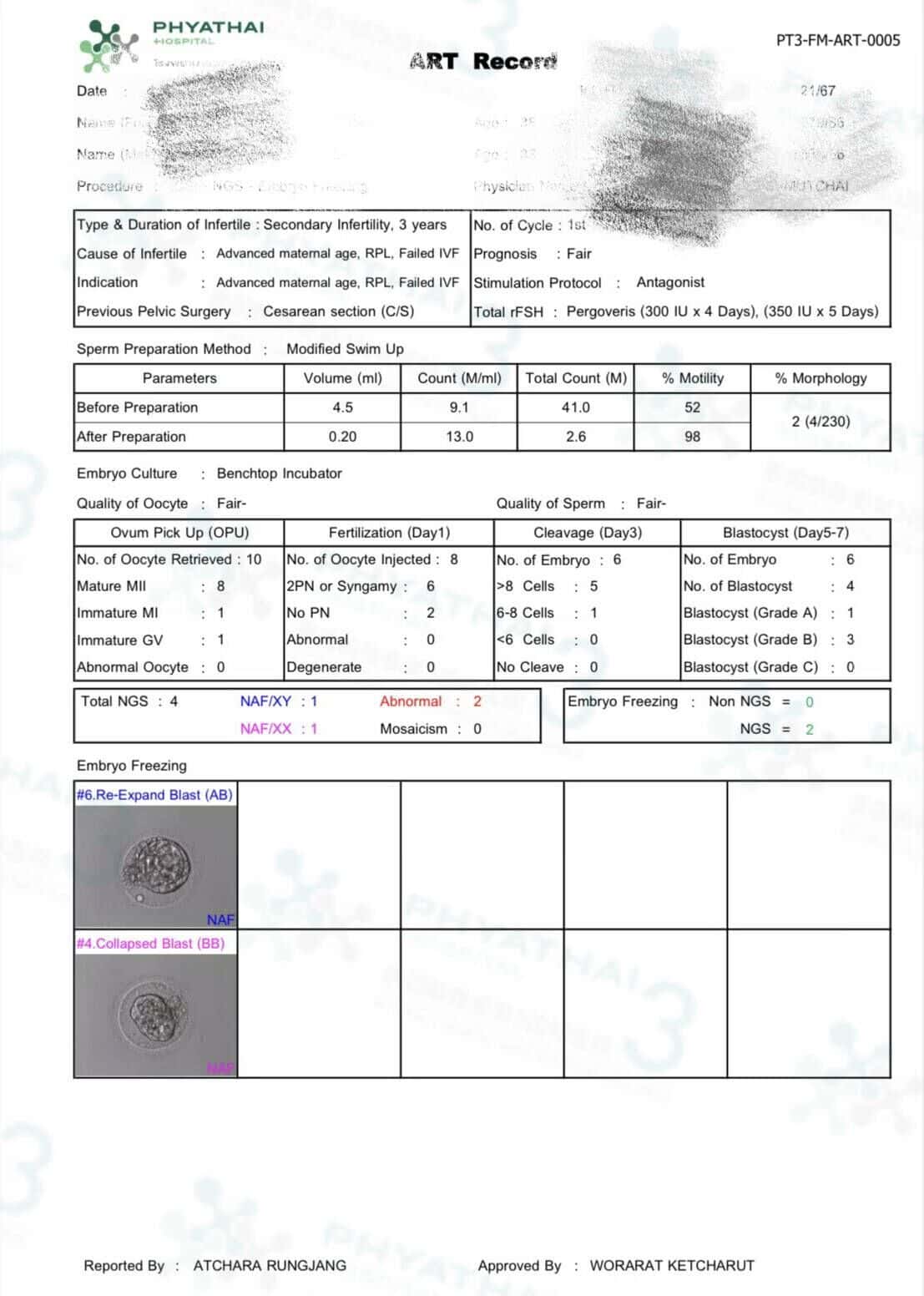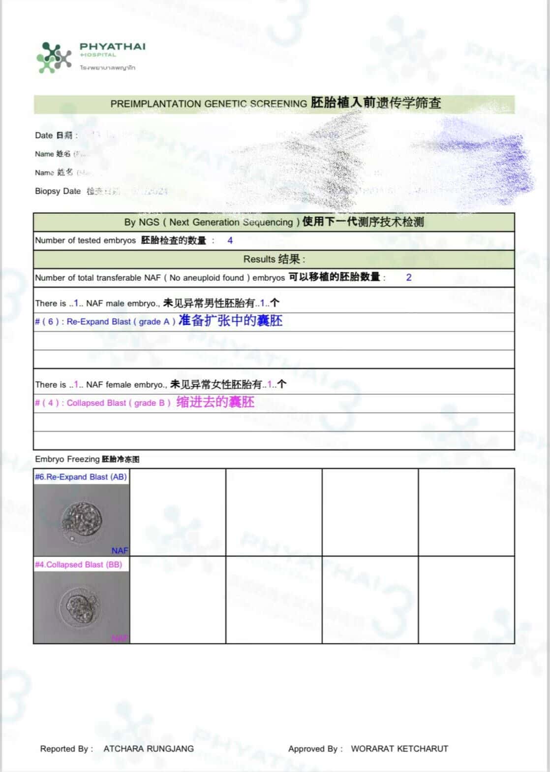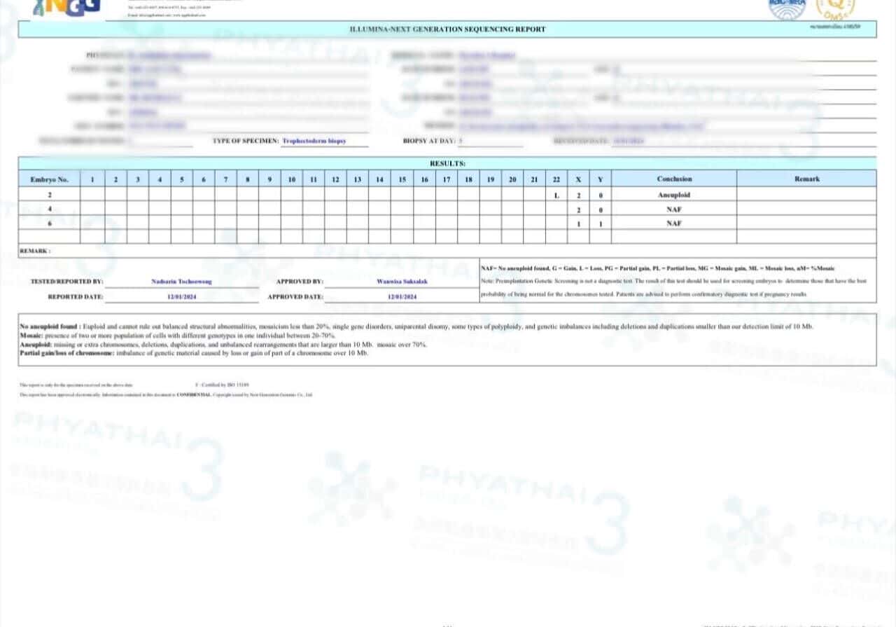哇哇哇 ~ 今天染色体报告出来了,有1蓝1粉健康胚胎可移植。患者在土耳其做试管了很多次,每次结果不太理想。所以最后选择在帕3做试管。这一次结果非常好。每一步都有医护人员清晰的细节。这跟土耳其进行试管区别的很大。那边什么都没有任何通知。任何选择在帕3接受治疗的人我们会提前安排好治疗方案并每个步骤都详细通知患者 ,所以患者不用担心会有任何错误。因此,任何在其他地方多次失败的人可以放心给我们解决问题就像这位患者一样噢。 一定会有完美的结果 。