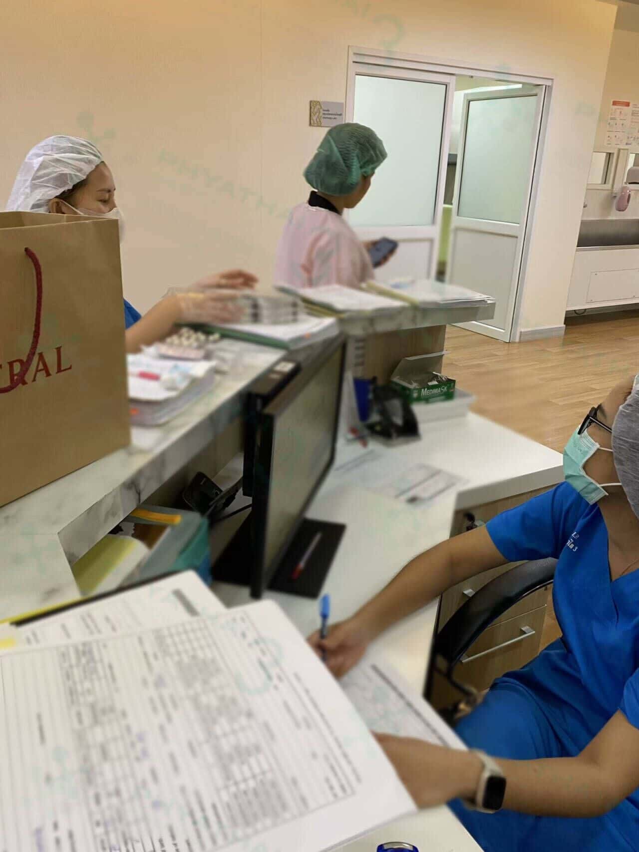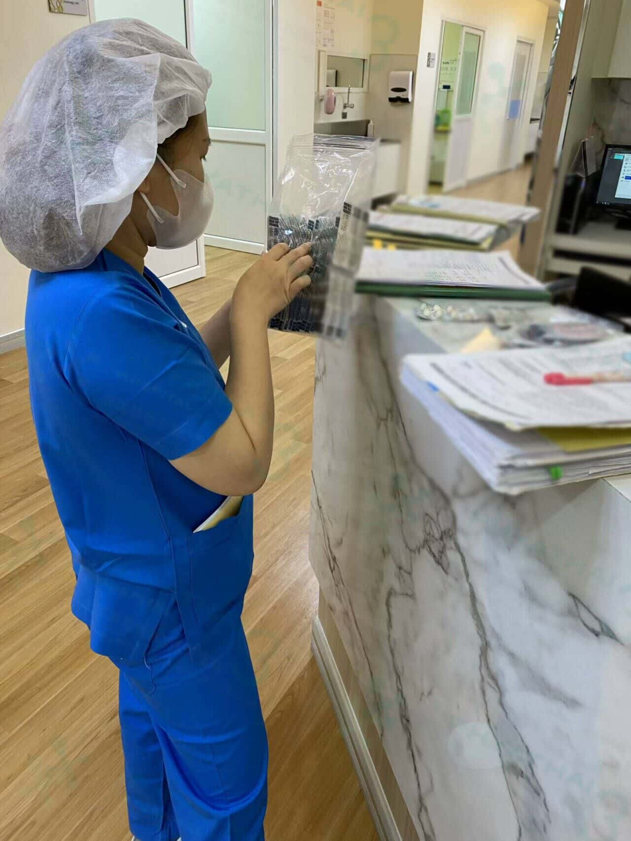 今天我就带大家看一下移植的一个步骤。大家可能会觉得到医院了就先换衣服,进去移植,打保胎针,然后下二楼拿药和返回酒店。但每个人在进行胚胎移植之前总是会忘记这个步骤就是移植前先把药给护士数剩下的药,以便医生开药给患者进一步使用。今天当患者看到护士数药时患者说这与国内的情况有很大不同。因为如果在国内,不管还有药多少医生会继续开药给患者。但是我们这边先检查剩余的药物是为了开药继续使用,也是为了检查患者是否正确用药。所以患者印象非常深刻,认为帕3医院的医护人员每一步骤的一切都具有非常细心都是专业。所以患者并不担心成功率,即使我们关心这个小事,成功率也一定会很高的。