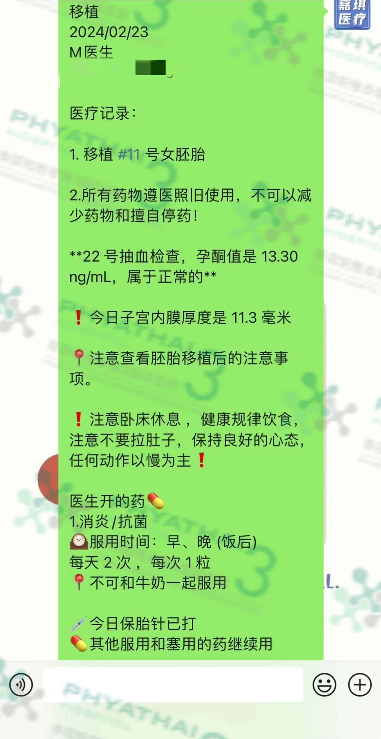 移植当天除了口服药和阴道塞剂外,医生还会安排保胎针也就是黄体酮,保胎针有利于胚胎着床,增加稳定性。一般保胎针是每隔一个星期打一次,但是其他口服药和塞剂则需要每天按时按量用噢,这些药也属于保胎药,是孕期前三个月宝宝最需要的噢