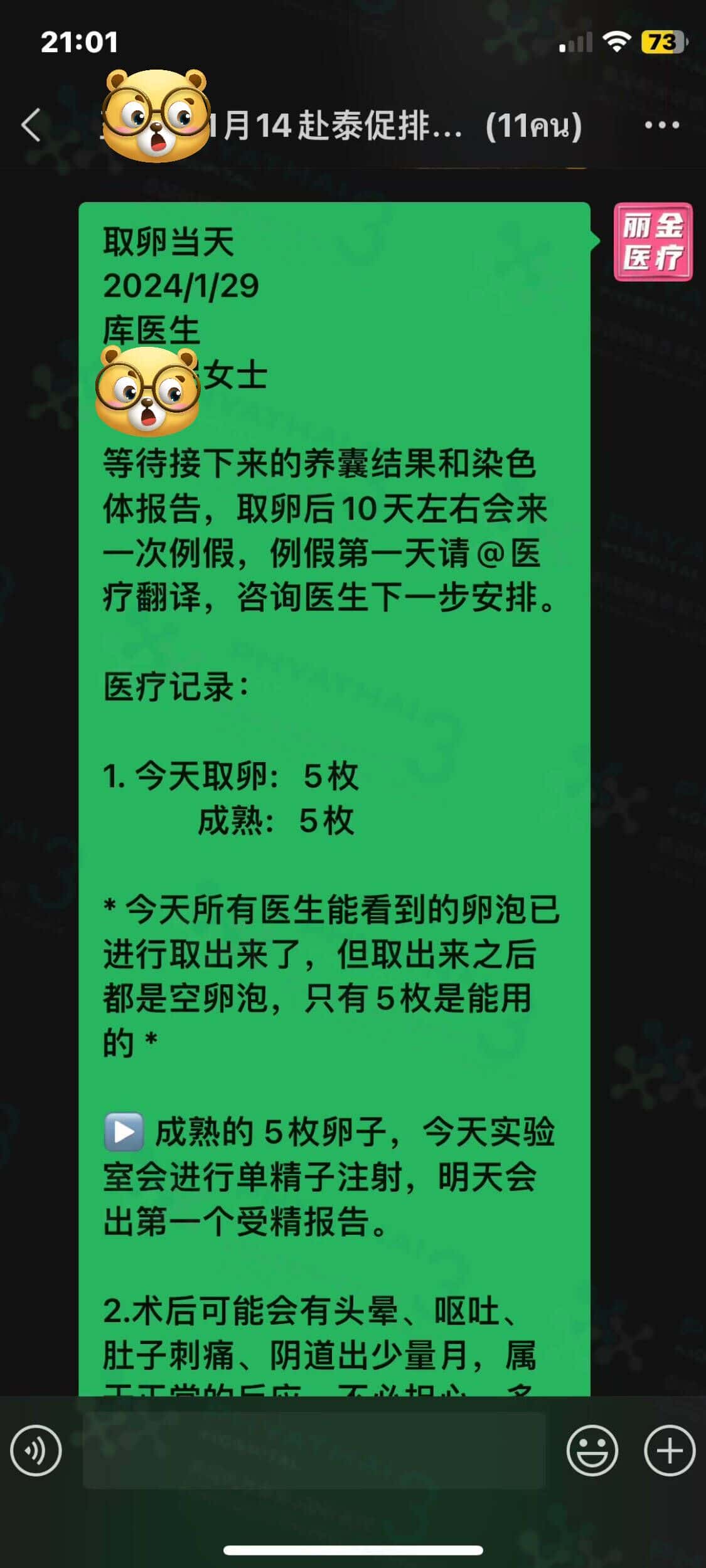 泰国最好的实验室就在帕三医院咯。确实卵泡数量有点少,取卵5枚,当天这5个卵子足够成熟,胚胎师会把5枚的卵子立即受精,今天是第一天养囊, 这5枚已经受精成功啦 ~ 太好了患者超级开心。 这个等于100%受精成功。 厉害实验室和胚胎师非常厉害。 患者自己说仍然感觉卵子的反应和质量不好,但还是受精成功。患者就觉得实验室和胚胎师在培养胚胎方面非常熟练。选择在帕3 医院接受治疗不孕症是正确的。因为相比其他地方养胚胎的结果被认为是最好的。