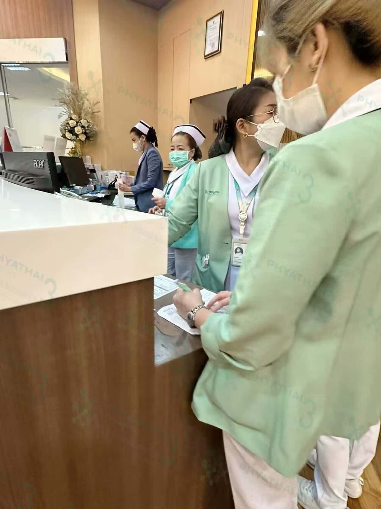 看看周末的帕雅泰3医院尤其热闹啊~ 每个周末医院患者会特别的多 在这周医院也举行了活动,一楼大厅有很多泰国保健品商店来出摊呢,好不热闹啊。二楼生殖科也是坐满了患者 今天有小姐姐验孕成功啦 更加欢喜呢,舒舒服服的就医环境 就数帕3啦