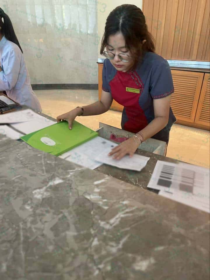 今天陪我们女士去看一下房间吧,今天好在我在酒店值班,女士这次是来我们医院移植的,女士今天有妈妈一起过来泰国的,今天我们试管姐妹们一起来酒店入住,导致大部分房间都被预订了,然后等了没多久酒店已经安排房间给我们女士了,但我们女士不确定移植后是否方便,所以女士想让我陪着她上来看看房间,到房间了女士是非常喜欢这房间,希望女士移植成功哦