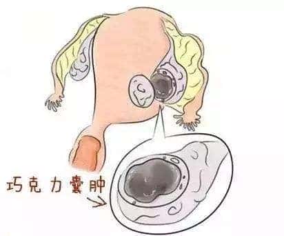 如果月经期脱落的子宫内膜碎片,随经血逆流经输卵管进入盆腔,种植在卵巢表面或盆腔其他部位,形成异位囊肿,这种异位的子宫内膜也受性激素的影响,随同月经周期反复脱落出血,如病变发生在卵巢上,每次月经期局部都有出血,使卵巢增大,形成内含陈旧性积血的囊肿,这种陈旧性血呈褐色,粘稠如糊状,似巧克力,故又称“巧克力囊肿”。