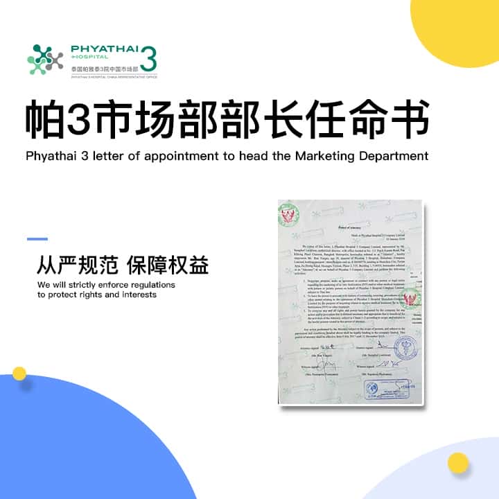 所以,以下文件不仅是帕3中国市场部的身份证明,更是患者在选择帕3时的最直观的就医保障。以下文件均是由泰王国大使馆统一盖章封存并由中国驻泰领事馆认证,文件具有法律效应。