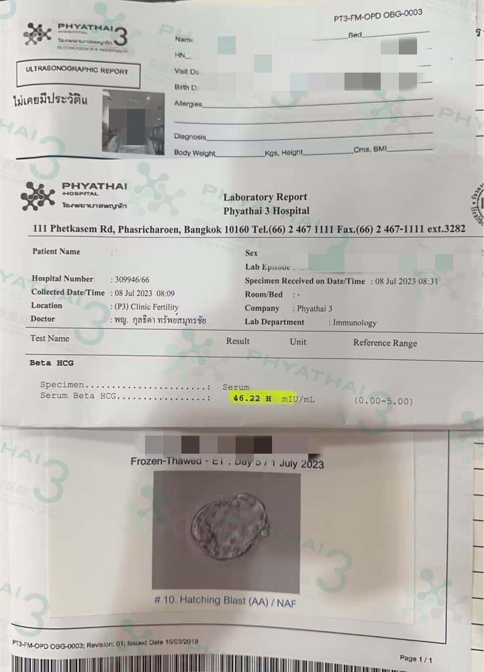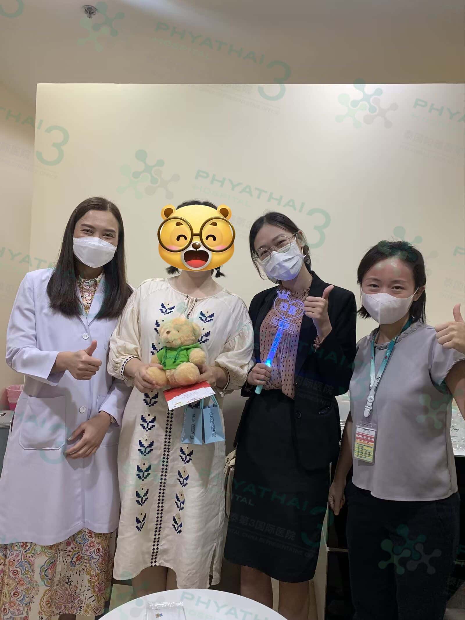 男宝开奖~ 一位很喜欢泰国很喜欢清迈的患者 因为工作很忙所以选了特诊 上次促排也是边旅游边促排的姐姐 从来没有焦虑 很相信库医生 按库医生的方案来走 一路都很顺利 时间很快移植了 今天验孕成功 库医生亲自给患者送小熊 女士激动一次成功 验孕了就回国了 感谢女士对我们帕三的认可 还会介绍朋友来一起接好孕