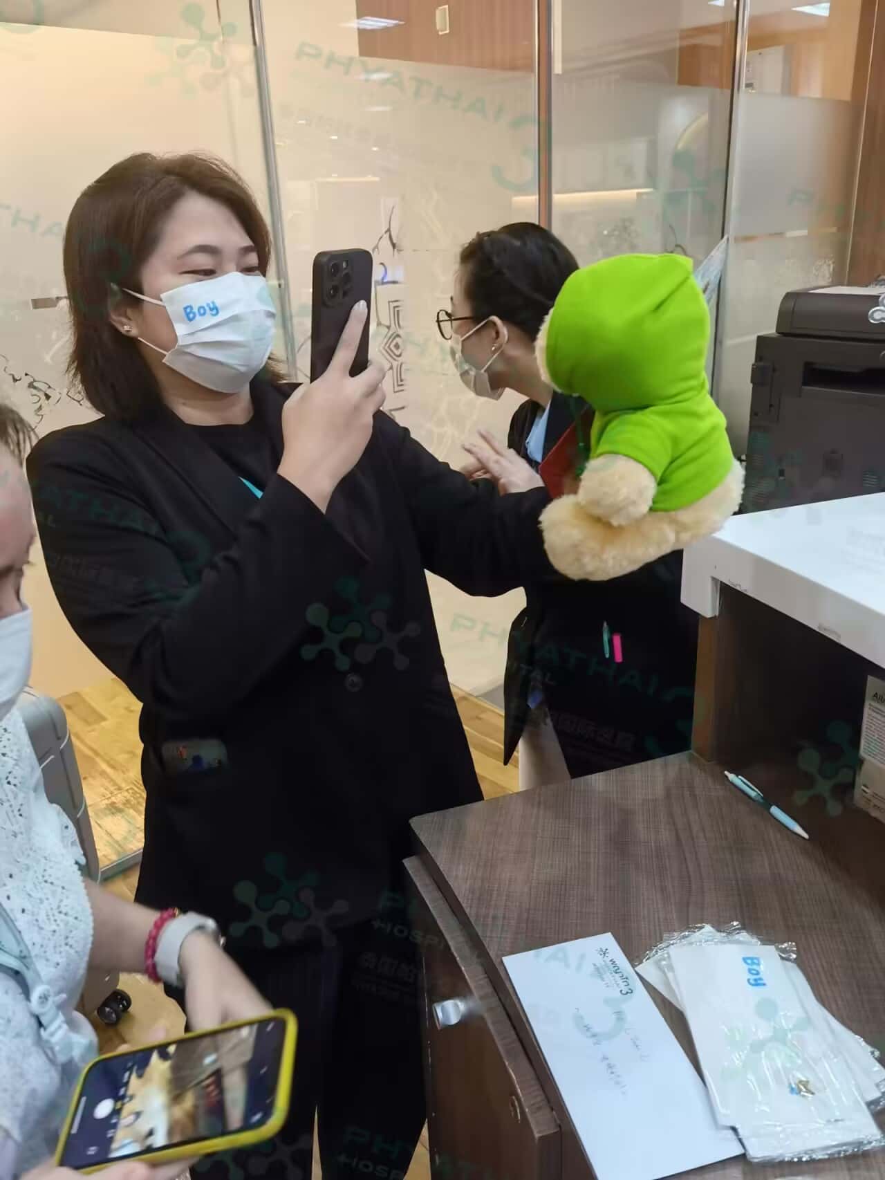 每次送小熊的氛围都是那么的欢乐和幸福,帕3医院的翻译小姐姐们都非常的喜欢送小熊的环节,在这个时候一起见证患者家庭的幸福时刻,今天的小姐姐等待这天已经好长时间,终于轮到自己接小熊,看得出先生也是激动的很,一直在道谢,感谢医生护士还有实验室团队,另外还有医疗翻译和生活翻译,因为有了大家的陪伴让他们觉得这段时间在异国他乡感到安全和放心,祝先生和女士一切顺利宝宝健康平安
