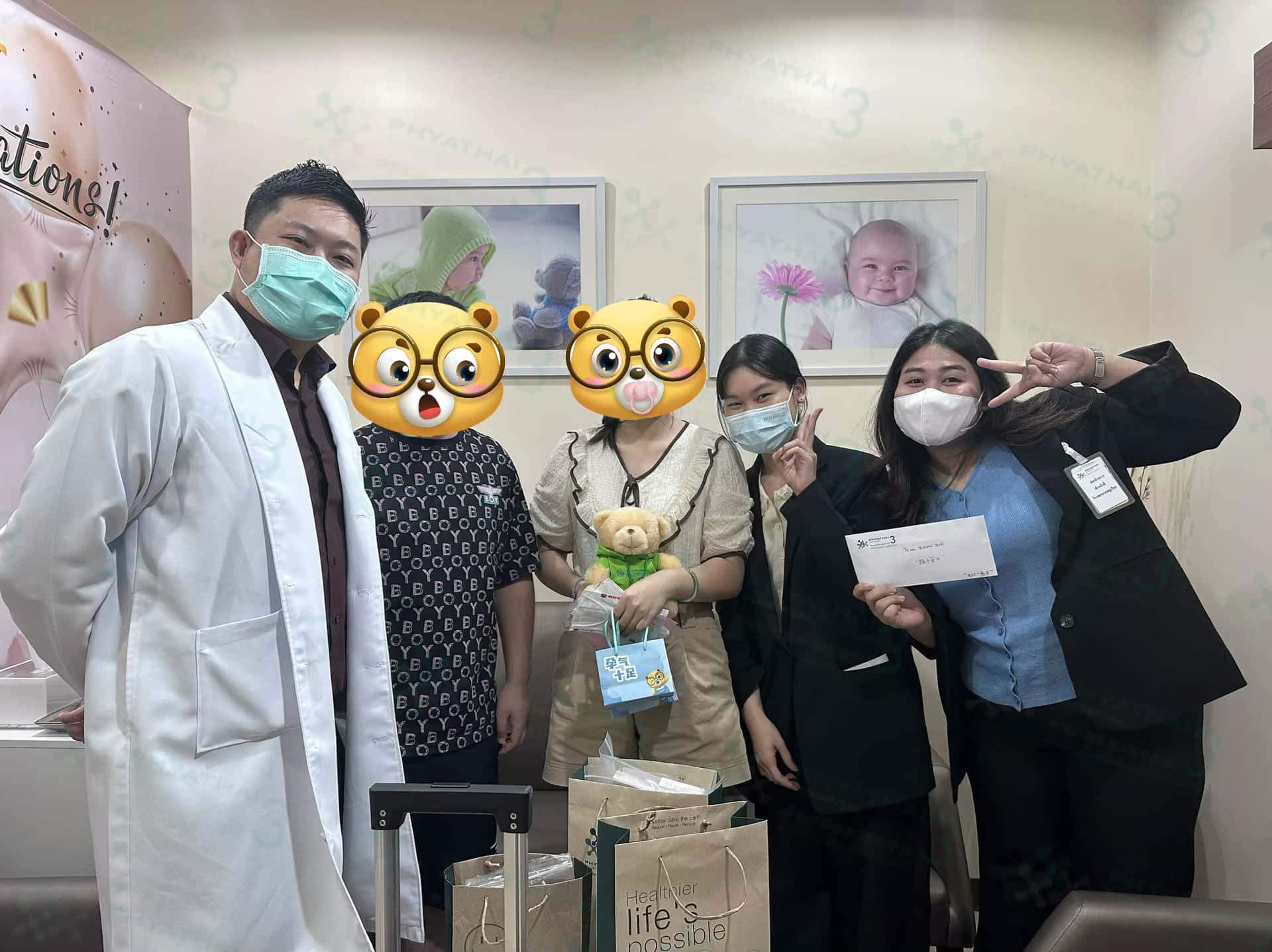 是我们的主治医生M医生以及双翻医疗翻译慈萍和生活翻译思远服务的患者成功好孕啦~先生和女士出发医院前,已经办理好退房,带着行李一起过来抽血等待血指报告~结果出来成功好孕啦~先生和女士表示很激动,一时不知道该如何表达,只看到开心激动的满脸笑容,接下来就期待漂亮翻倍啦,一切顺利