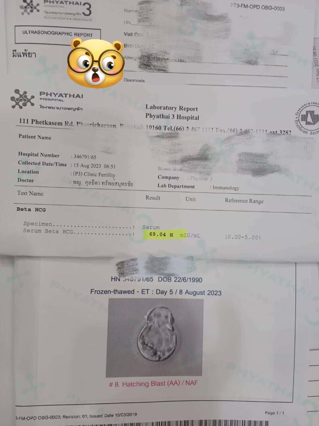 时间过得很快。从验孕成功后直到今天,医生预约患者来产检。患者现已怀孕8周。从怀孕6周开始,就开始能看到宝宝的心跳了,并听到轻柔的心跳。今天心音很重,直到患者根本不敢说话,因为他想尽可能清楚地听到宝宝的心跳,这被认为是生命中最美的声音。做试管是非常神奇,从验孕血值仍然只有69,直到今天看到心跳了,谢谢帕雅泰3医院让我们的家庭成为一个完整的家庭。这段时间继续按时用药,后期一切顺利
