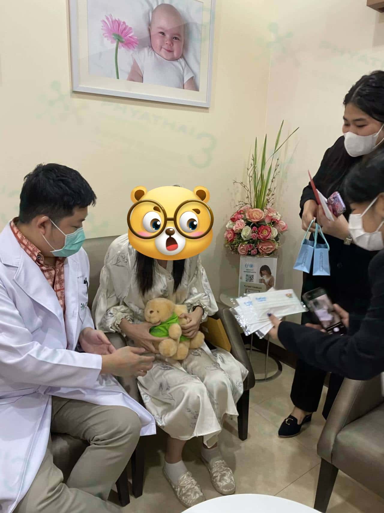 女士考虑这次移植一对小蓝,下一胎再过来接小公主回去。今天验孕成功,见完诊带女士进去房间里面等,一走进去的时候女士就知道等一会就能拿到小熊啦。看到别人得到小熊后,没想过自己也会有这一天。再次恭喜恭喜,希望后期一切顺利平安到生宝噢