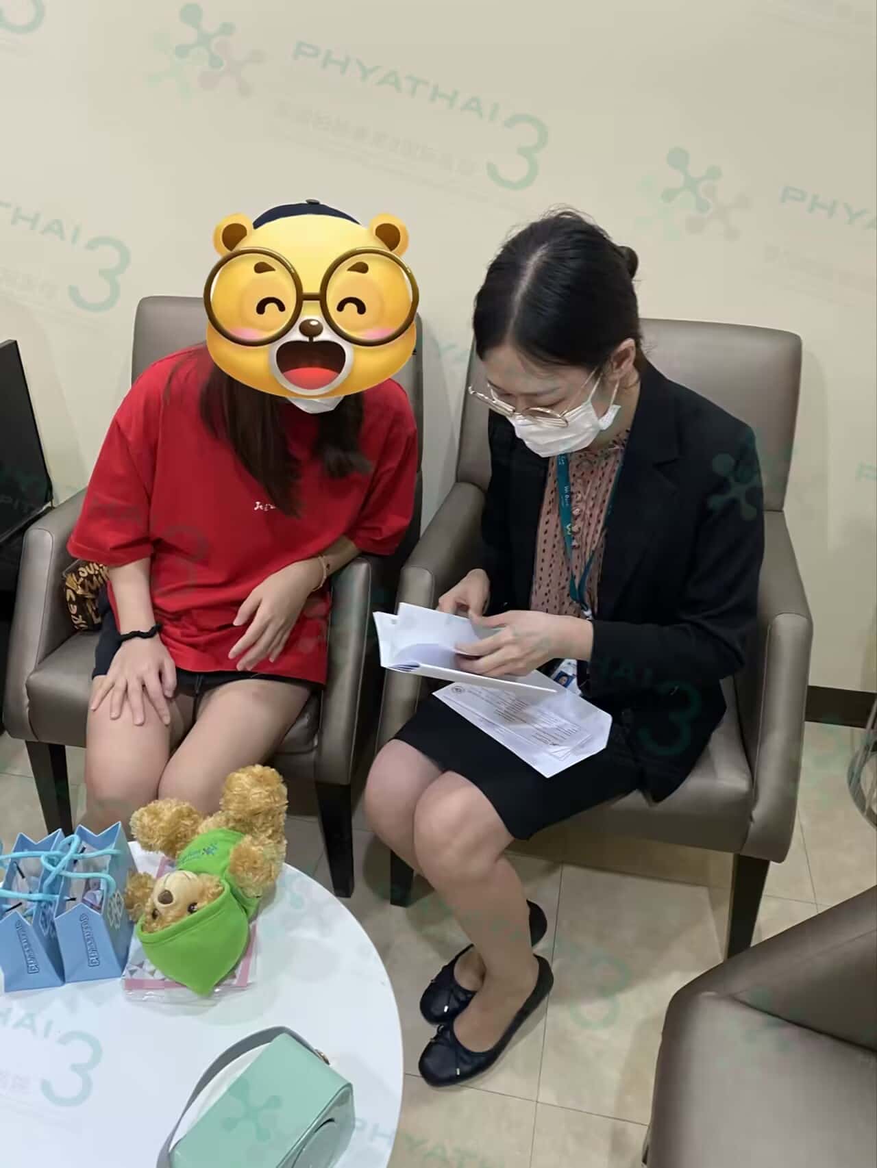小姐姐穿红色衣服来医院验孕,因为明明知道自己一定会成功好孕~恭喜恭喜哈女士,终于成功的带小王子回家啦,在家等好信息的小公主一定会很快心,她自己终于有滴滴咯~祝您后期顺顺利利,每一步一切都一路绿灯到生哈