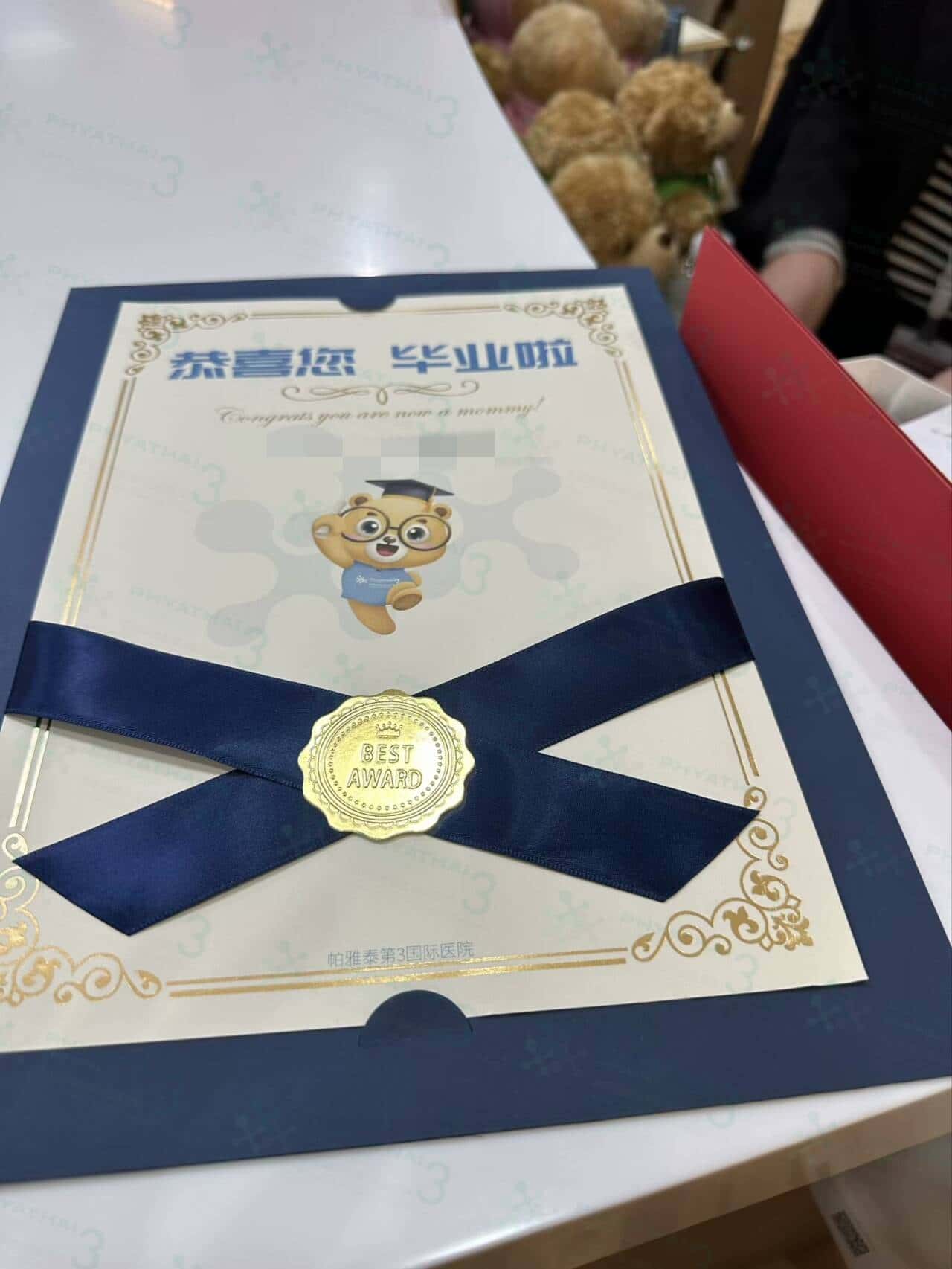 帕3生殖科 几乎每天有人验孕成功,都会看到送小熊环节,翻译和医生一起祝贺好孕家庭,拍照留念。从进周每天打针 到取卵和移植时的紧张,一路走来妈妈太棒啦~祝宝宝和妈咪健健康康 后期顺顺利利~