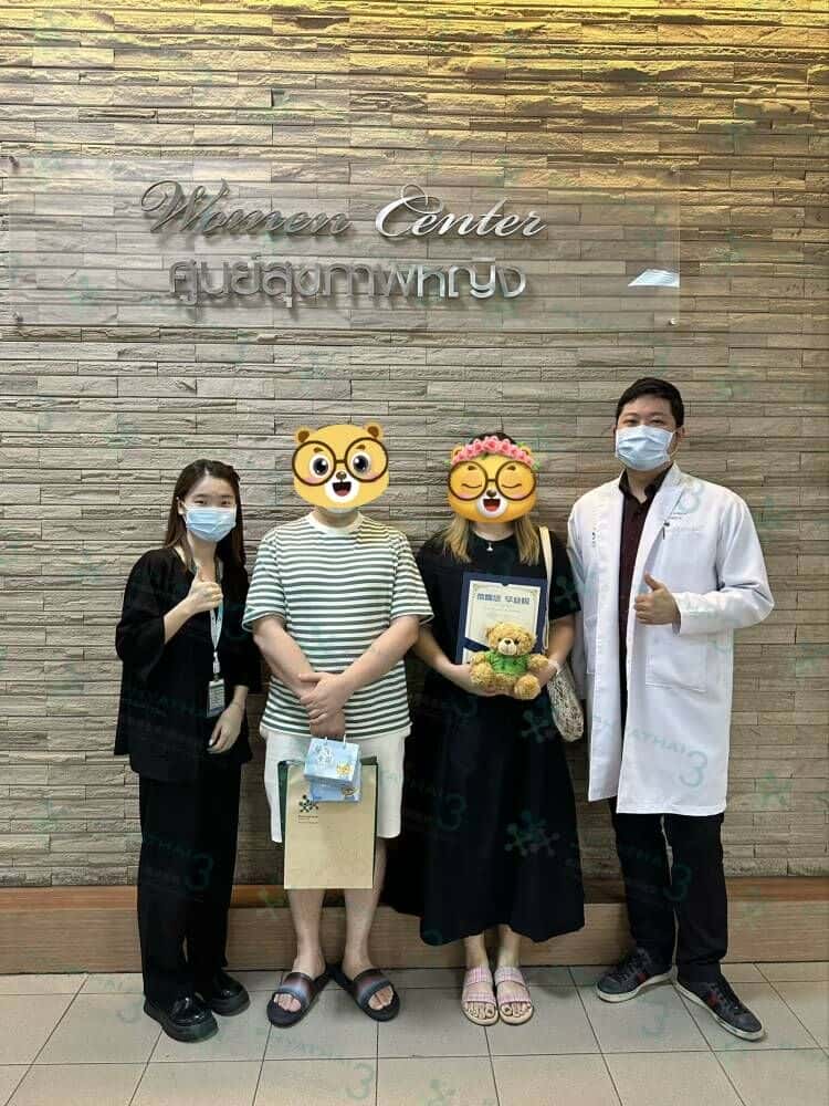 M医生棒呆!移植当天医生祝福女士好孕,今天移植后第七天血值上升,龙宝宝来啦,女士说托医生吉言,一次顺利好孕!今天医生再次安排了保胎针,女士说我的天啊,这个针真的是终极大boos,疼了我好几天,为了孩子我忍。很有趣的小姐姐,祝福后期顺顺利利,来年带孩子一起来曼谷玩儿呀