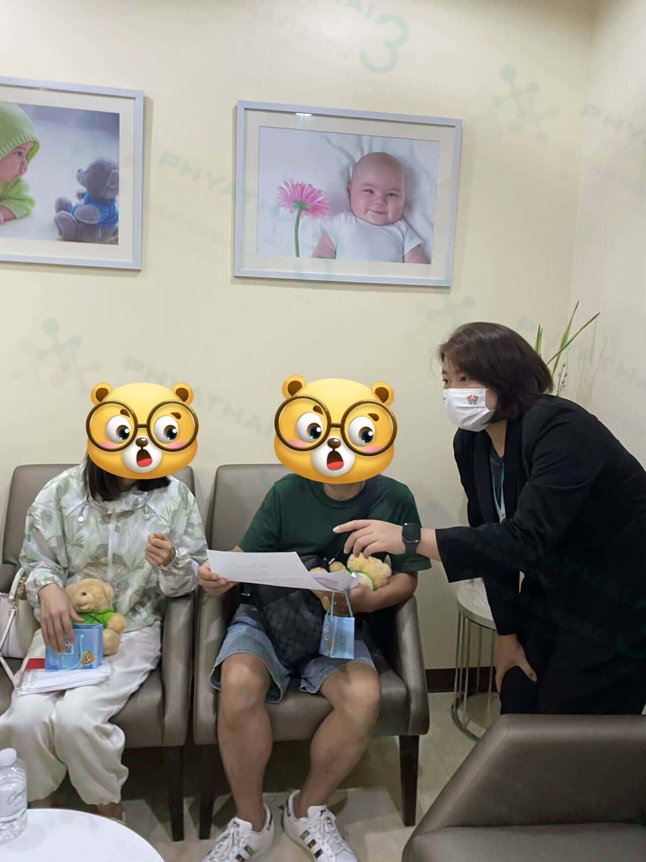 放眼望去,到处都是抱着小熊的人。来治疗不孕症的人拿小熊就代表验孕成功了。患者很高兴得说来见诊的第一天就得到了蛋白质。但今天我终于得到了小帕熊回家。非常感谢所有医护人员让我们的家庭变得更大、更完整。对于接受不孕不育治疗的患者来说,整个过程非常顺利,并希望永远如此顺利噢。