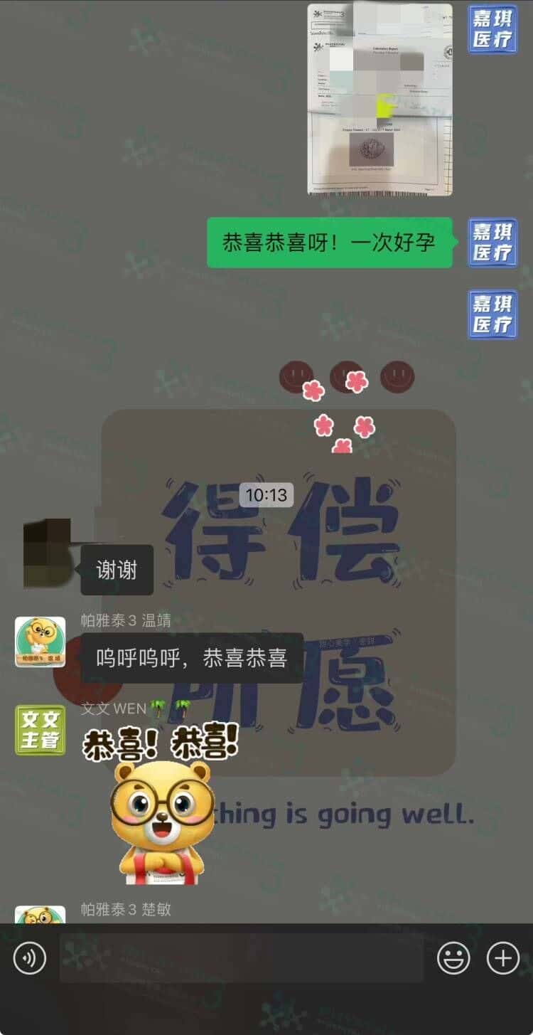 是一胎小王子呀!美国家庭一次在帕 3 成功好孕!疫情原因和地区原因导致小姐姐去年才来帕 3 开启促排之旅,好在很是顺利得 4 蓝 4 粉健康胚胎凑成 4 对小王子与小公主噢。回去调理了一段身体并整理了一下工作,这个月来接宝咯,小姐姐根据自己的意愿移植了单胎小王子,今天移植后第七天来开奖,胚胎成功着床咯太好了!我们生活翻译小姐姐还是一如既往的贴心准备了申请轮椅资料,这样回国时就可以有轮椅服务也能尽快出关啦。试管之旅圆满成功,祝福后期顺顺利利,一家三口开心快乐
