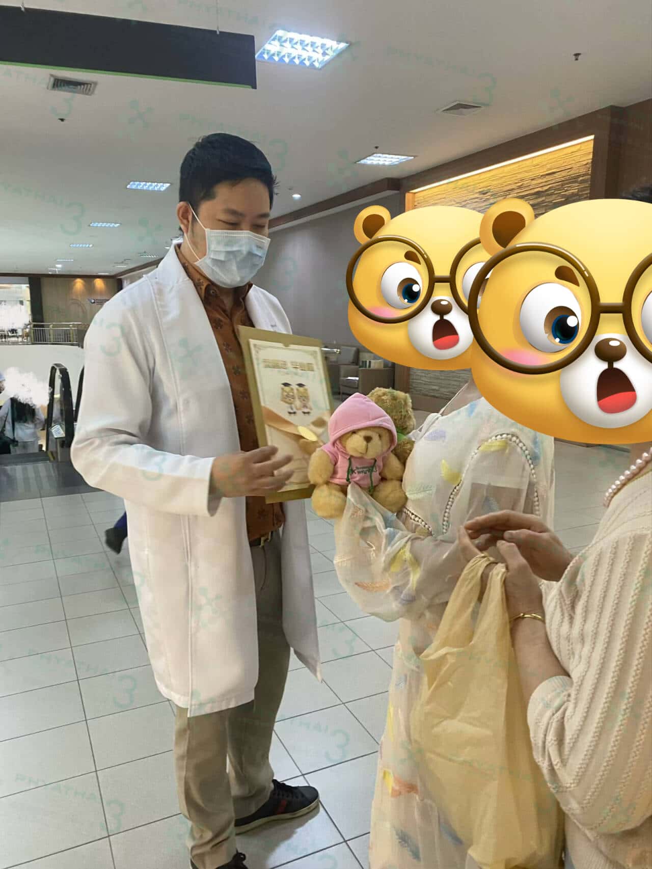 今天是一个好的日子, 从大早患者就到医院抽血验孕。结果就不用说了肯定会怀,今天血值超级棒移植后才第七天已上升100 多了 。 选择在帕3医院做试管一点没有失望过一次搞定移植成功。 M医生技术很厉害,在试管的流程医护团队也是非常细心的照顾。 今天见诊完的时候 ,M医生也替患者开心一起出来亲自送小熊~ M医生说恭喜恭喜,今天可以接龙宝回去啦 ~ 希望后期一切顺利平安到生噢。 送小熊时的气氛充满了幸福和欢笑。每个人的脸上都洋溢着笑容。患者的笑容也算是对我们继续努力的小小的鼓励。 我们希望后期宝宝们健康成长哦。