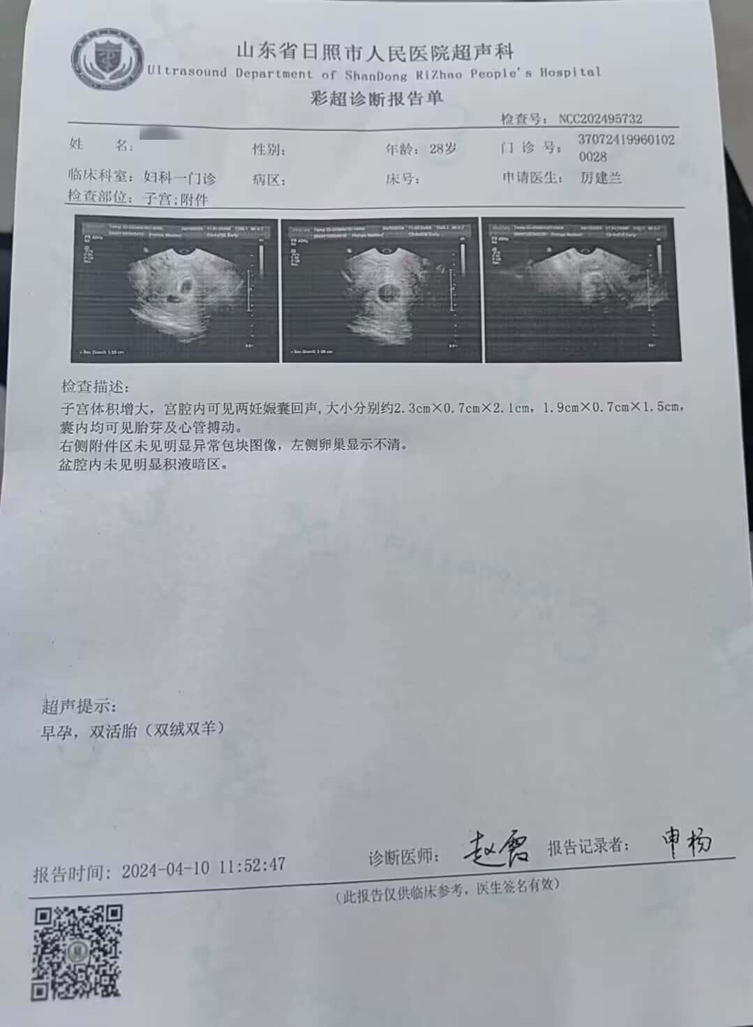 三队双胞胎看到胎心啦~