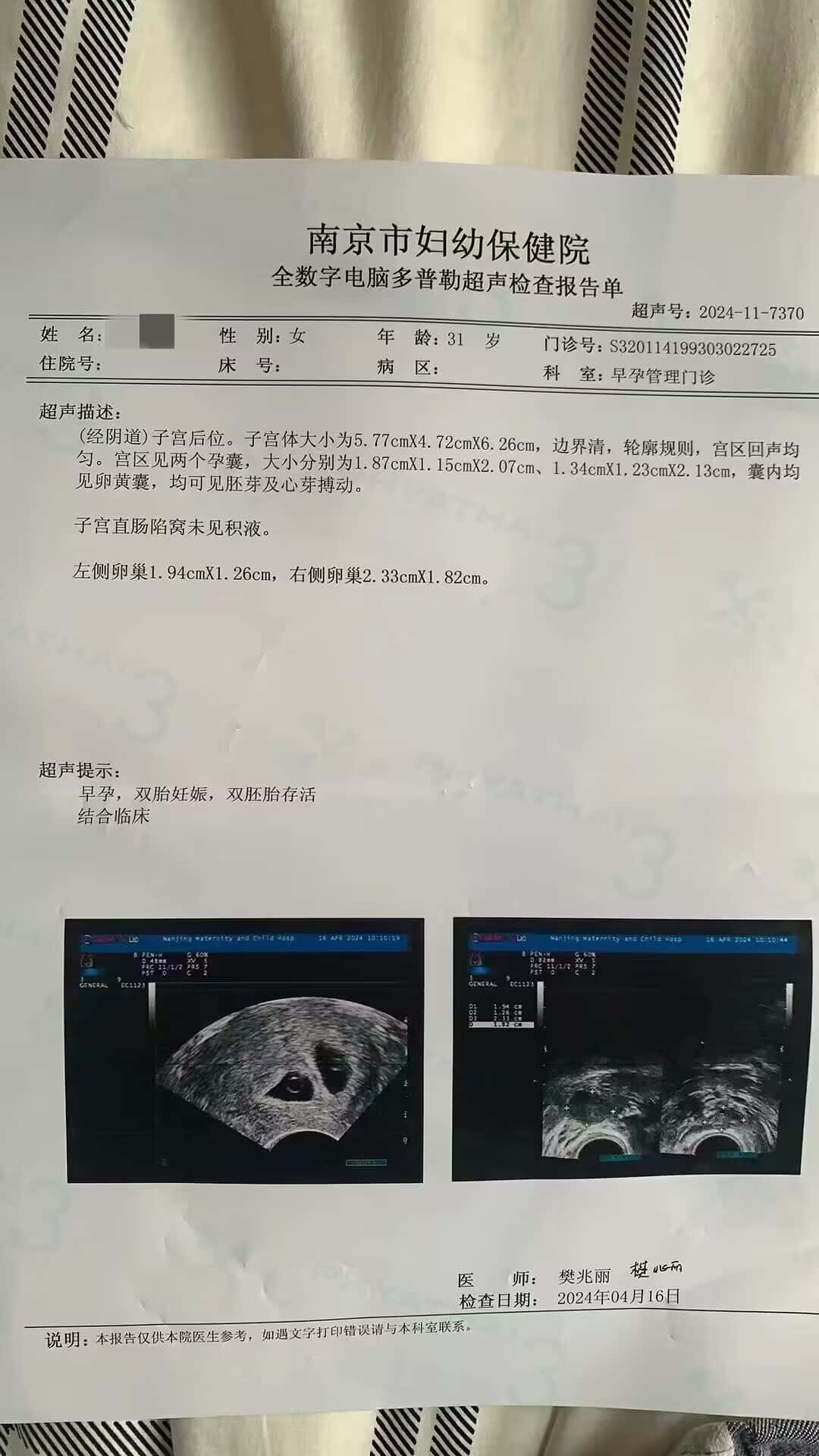 上个月好孕接龙宝宝回去的三个家庭 今天到了孕期六周 按照医生给写的流程去做检查,大家发报告过来两个双胎小王子 一个双胎小公主 今天都有看到胎心了 真的替患者开心 成双成对 后面也顺顺利利到出生哦
