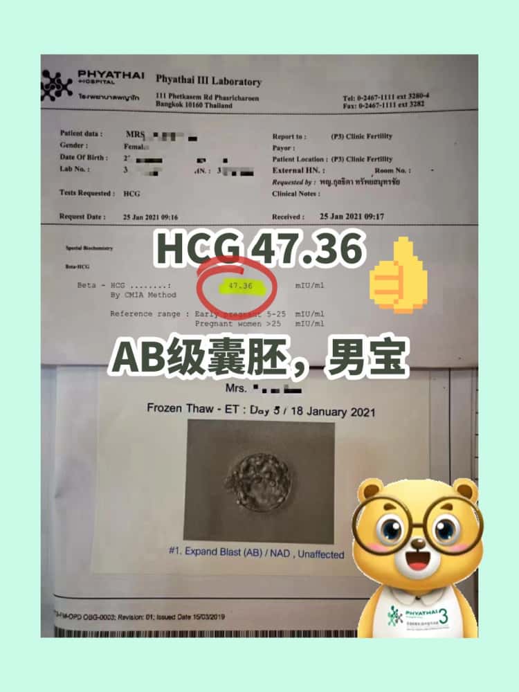 同样是一次好孕,这次赴泰成功接二胎男宝啦,移植第7天HCG47.36!