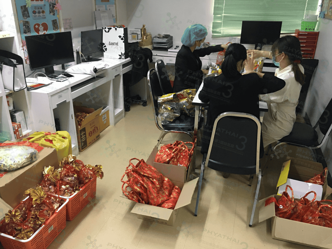 由于这次过年期间来的患者人数较为庞大,共有38组家庭到达帕雅泰3医院就医,医院为此特地准备了贴心礼品及新年的氛围布置,让患者们即使在异国,也能感受到“年”与“家”的温暖。