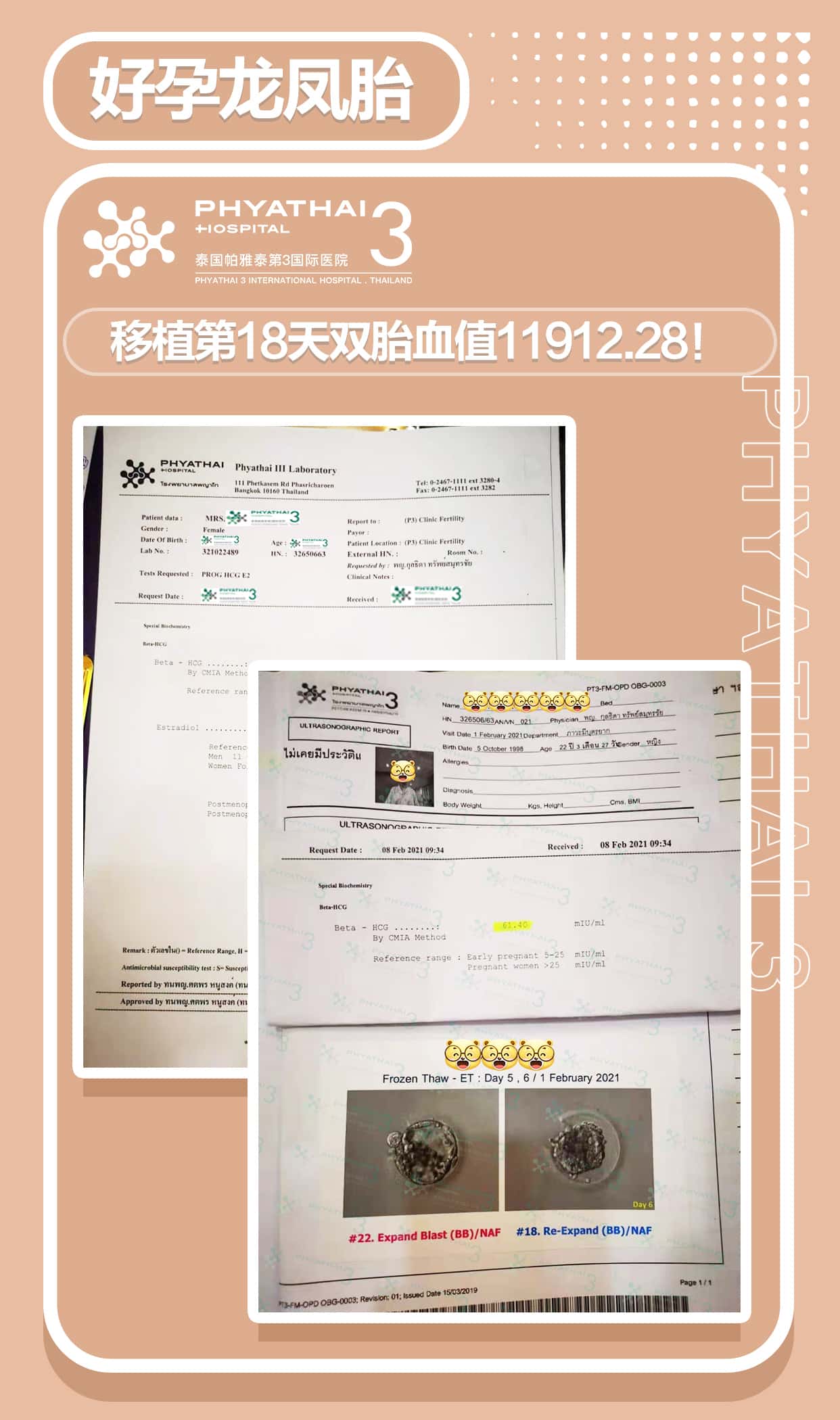 典型多囊患者,赴泰试管一次成功龙凤