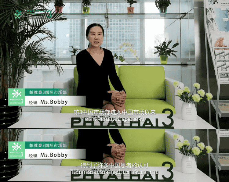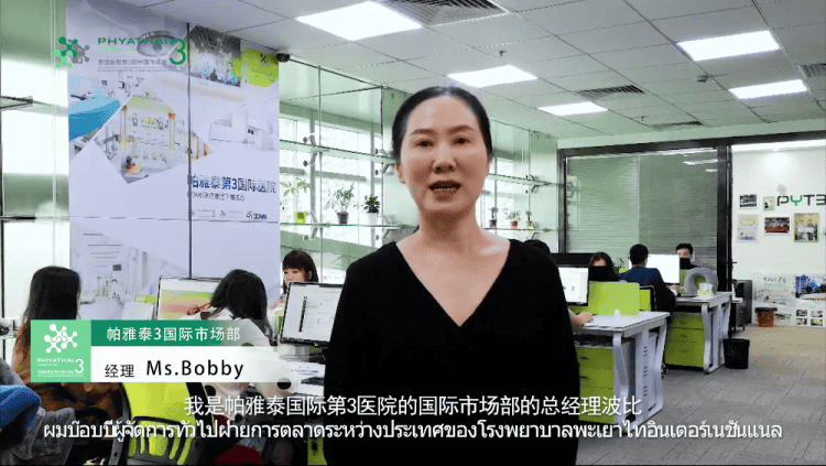 2019年4月8日,帕雅泰3院国际市场部总经理Ms.Bobby(波比)于泰国飞往中国市场部进行视察。在本次视察工作中,总经理Ms.Bobby特别拍摄了一段视频,希望能给广大中国患者更直观对话, 让更多患者了解到帕3设立中国市场部的初衷——让患者直接对接医院本部人员,让试管过程更安心、更省心。
