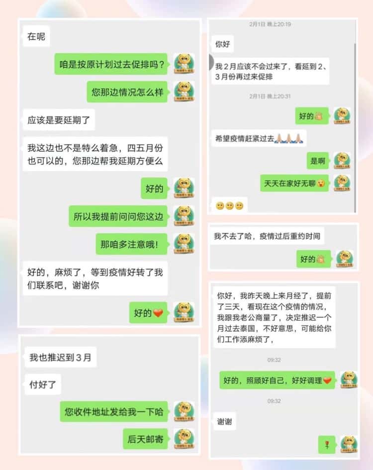 我们先是联系原先预定1、2月出发的患者通知改期,