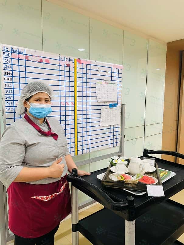 下午我们泰国试管医院的工作人员正在给我们医院的患者送下午茶哦 ~今天的下午茶有西瓜,西瓜形状是爱心呢 。真的是满满的爱意呀!