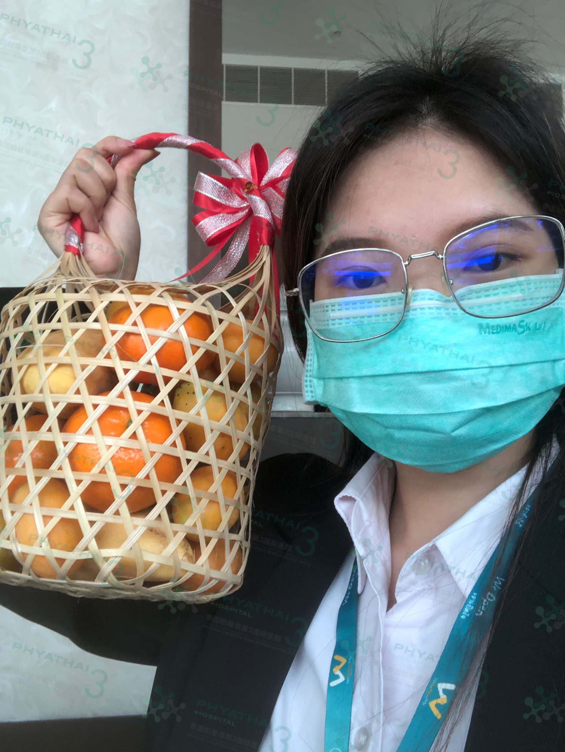 果篮里的水果是泰国当季的水果,因为泰国是热带国家热量充足所以水果特别甜特别好吃,今天买的水果有芒果、枇杷芒、还有柑橘,放得满满当当的!希望我们做泰国试管的患者会喜欢!