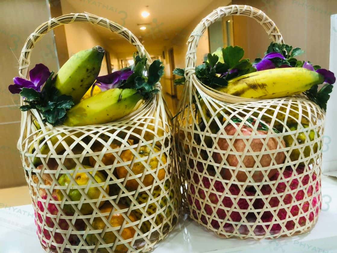 量体温回来看到一对情侣给我们试管患者送外卖,我的天!这也太可爱了吧。同时阿姨也带着水果走过来了,是要给昨天入住我们泰国试管医院的两个试管家庭送水果篮啦,超级漂亮,阿姨好有心哦!