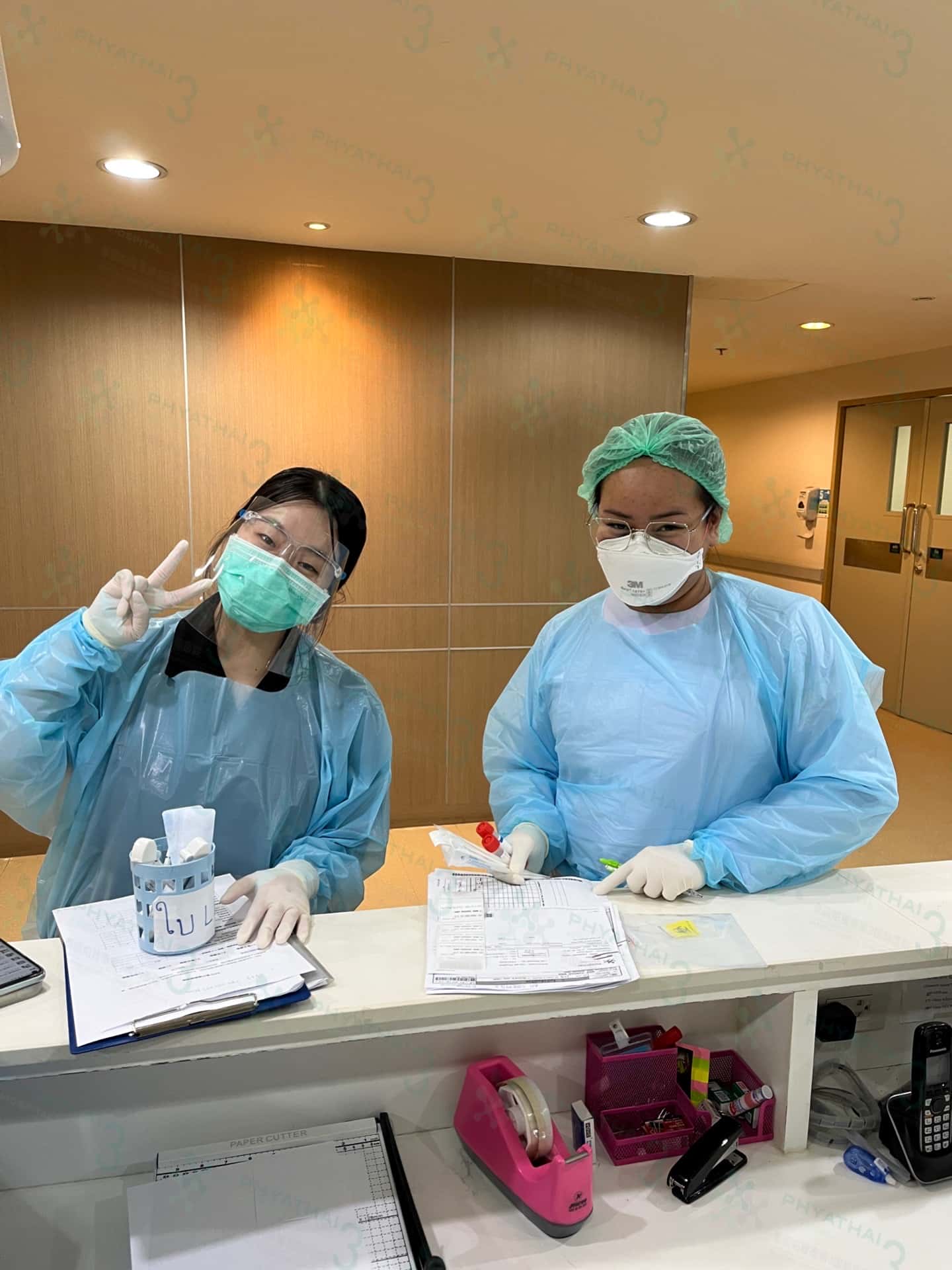 到了泰国试管医院护士小姐姐准备好做核酸检测的药水和资料,我们泰国试管医院的翻译小施也穿好防护服,准备好陪同试管患者做核酸检测。