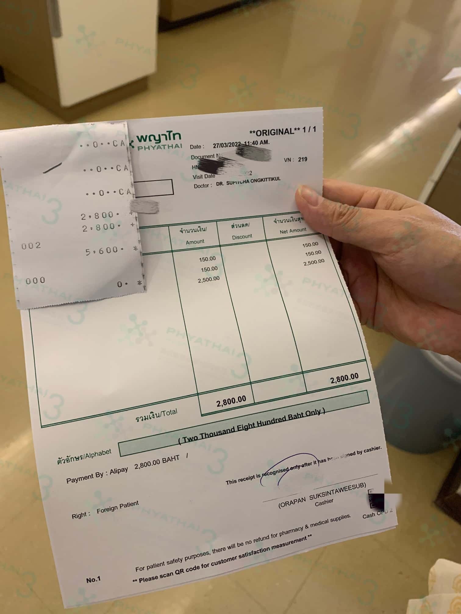 虽说国内确实已经不用现金了,但是在泰国日常用现金还是比较常见的~支持支付宝也大大方便了我们试管患者支付,还有钻石汇率可以领取!最近的汇率很不错哦,也可以省一杯奶茶钱啦,缴费成功-签字,我们泰国试管医院的单子上也会有费用明细~