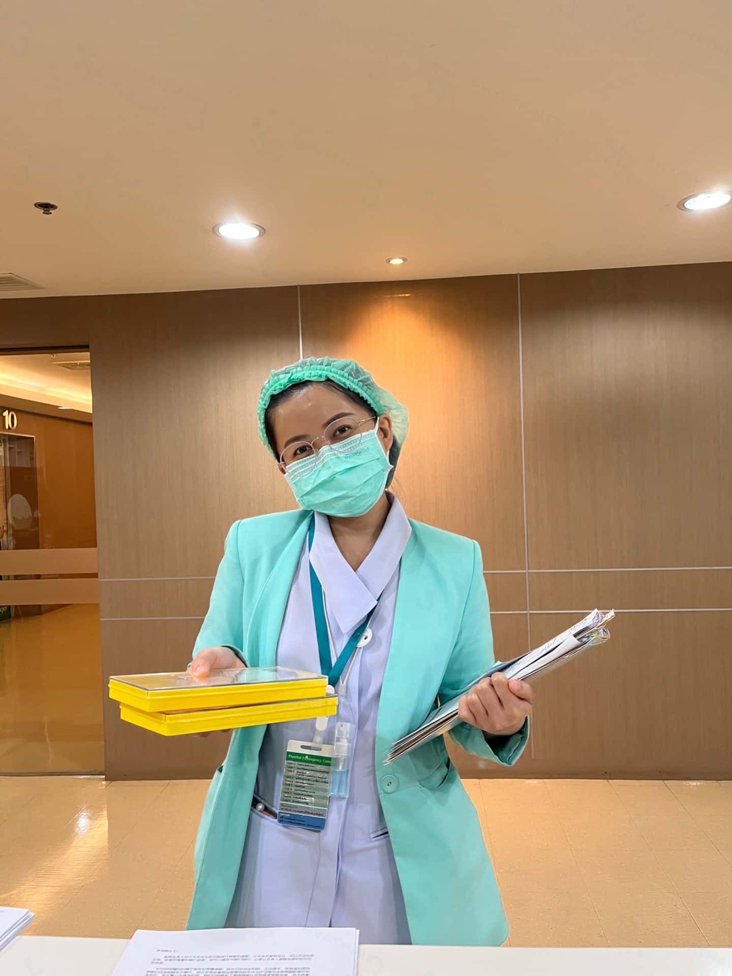 有一次我的泰国试管患者跟我说这位小姐姐带着眼镜,这位泰国试管医院护士小姐姐打针的时候手很轻,都没什么感觉就打好了,让我下次记住也要这位护士给她打针~
