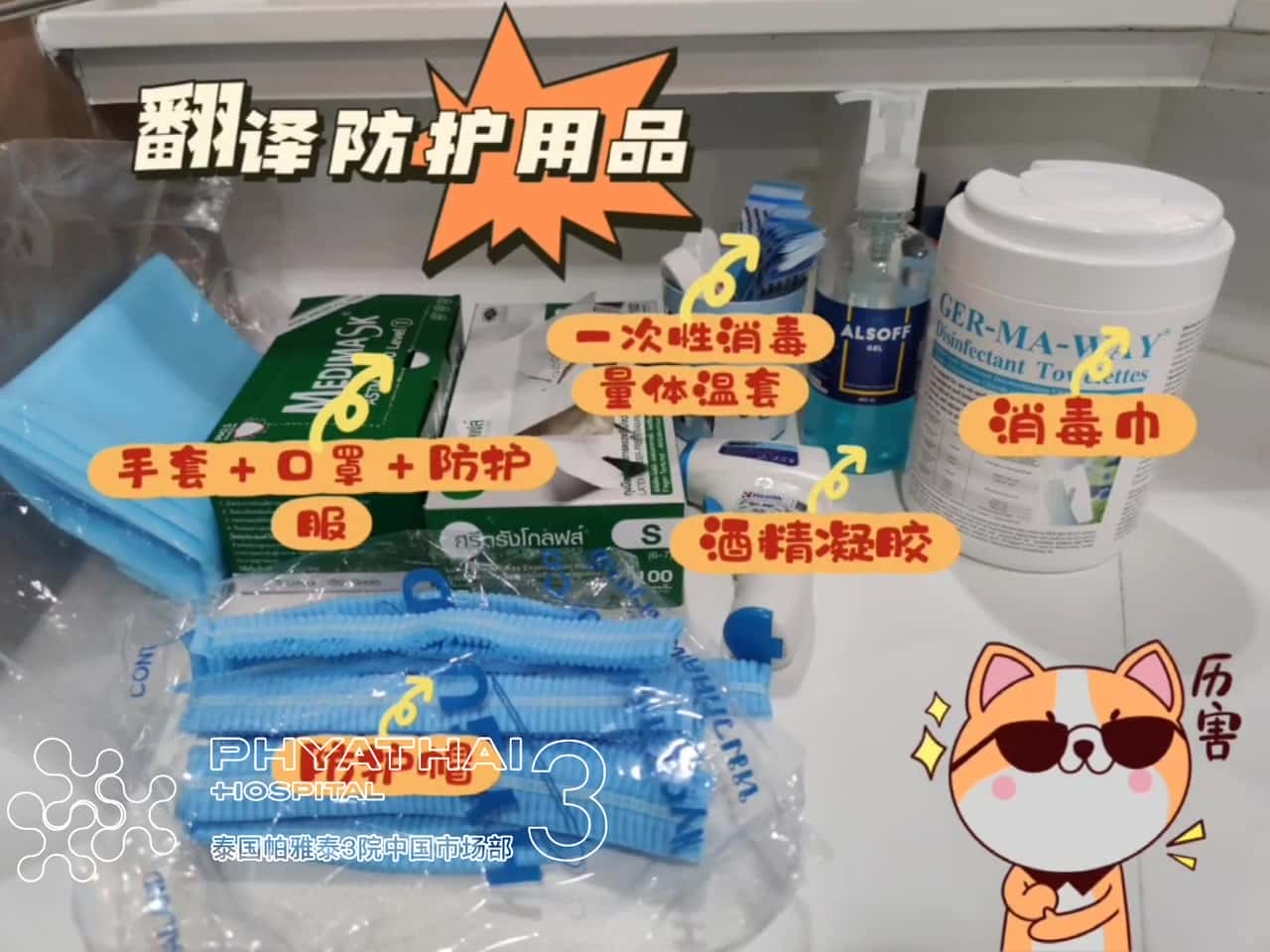 日常给送泰国试管医院患者送外卖都是先进行消毒再送到房间的哦,每次去隔离房间我们泰国试管医院翻译都会戴手套口罩以及防护帽再进去的哦,每天量体温也是采用一次性消毒套的哦~