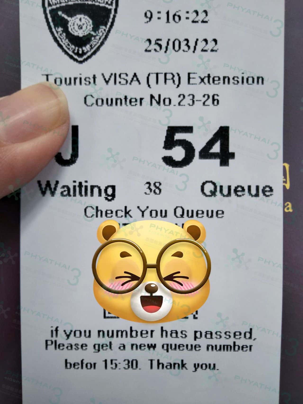 今天带1个试管家庭去续签,疫情期间为了安全,我们泰国试管翻译全程等叫号,让试管家庭在外面人少的休息区等待~快到号的时候我们泰国试管医院的翻译通知再进去面签~