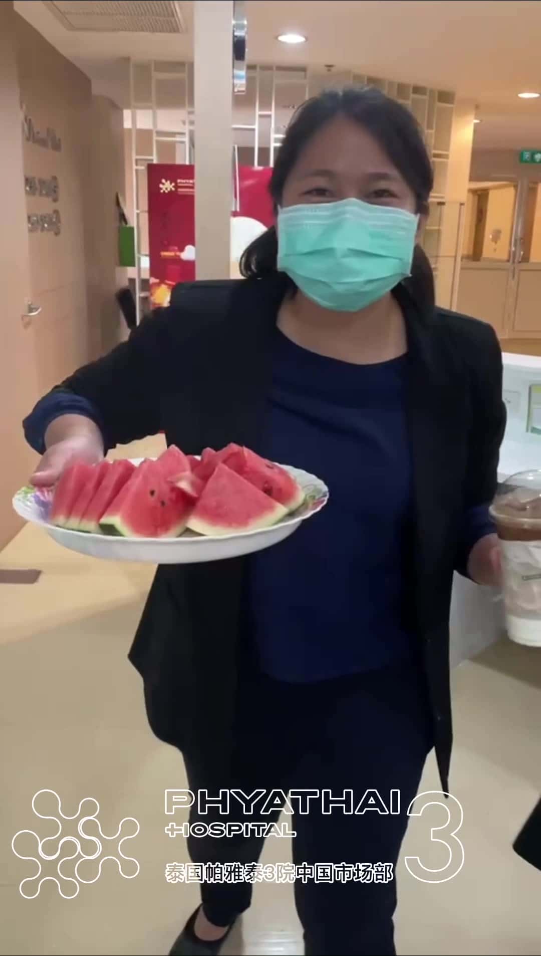 今天我们泰国试管医院的车厘子小姐姐买了半个西瓜,才25泰铢哟!