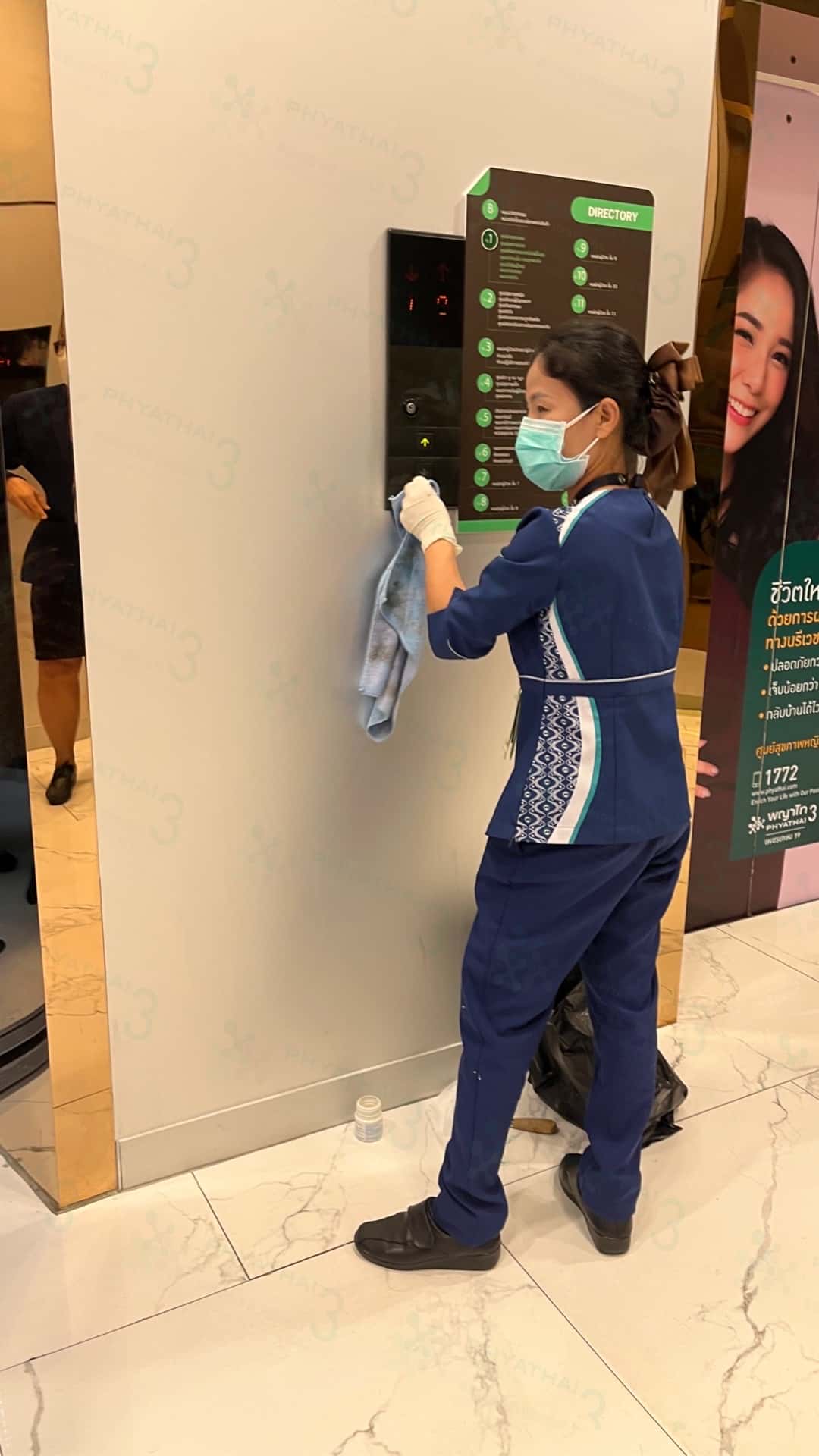 今天一整天我跑上跑下,发现我们泰国试管医院的清洁阿姨们在清洁电梯按键,非常的细心!