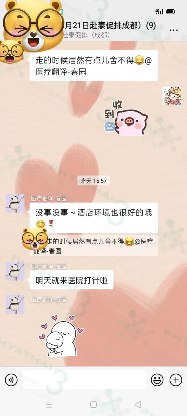 泰国试管患者说到酒店了很不适应,很舍不得,还是非常想念在我们泰国试管医院隔离的日子呢~