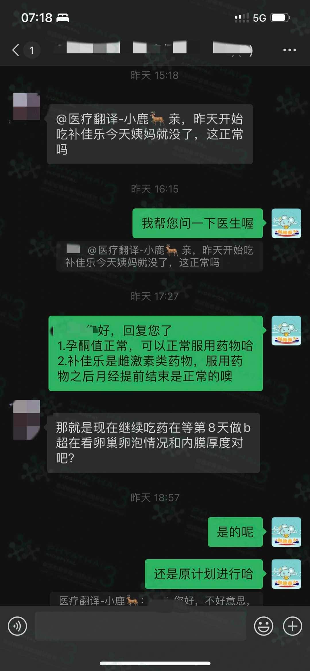 由于疫情开放了,所以很多试管姐妹也会尽量减少在泰国停留的时间,那同事也有很多患者疑问,如果我们取卵后就回去了,那么用药或者检查应该怎么办呢,其实不用太过担心这个问题,因为我们全程都有医疗翻译和医生进行跟踪,月经第二天去检查是否有空卵泡,马上把报告发给医生完全没问题,医生也会通过报告给患者进行远程用药以及检查的指导,让您没有后顾之忧!所以试管姐妹们取卵完大可以放放心心回家喔