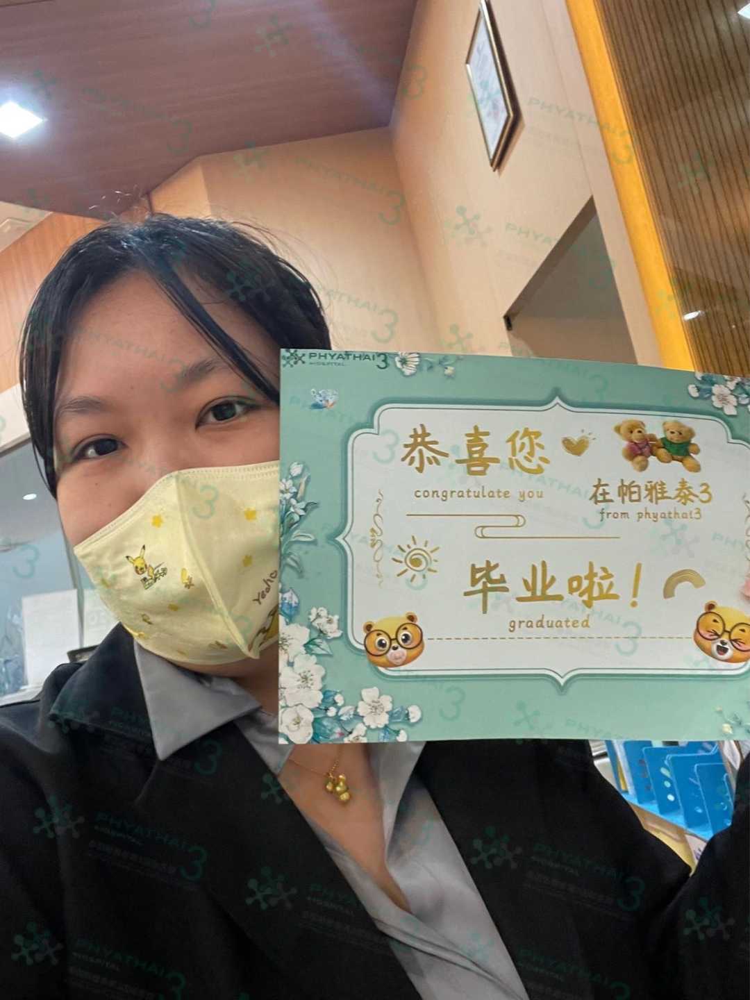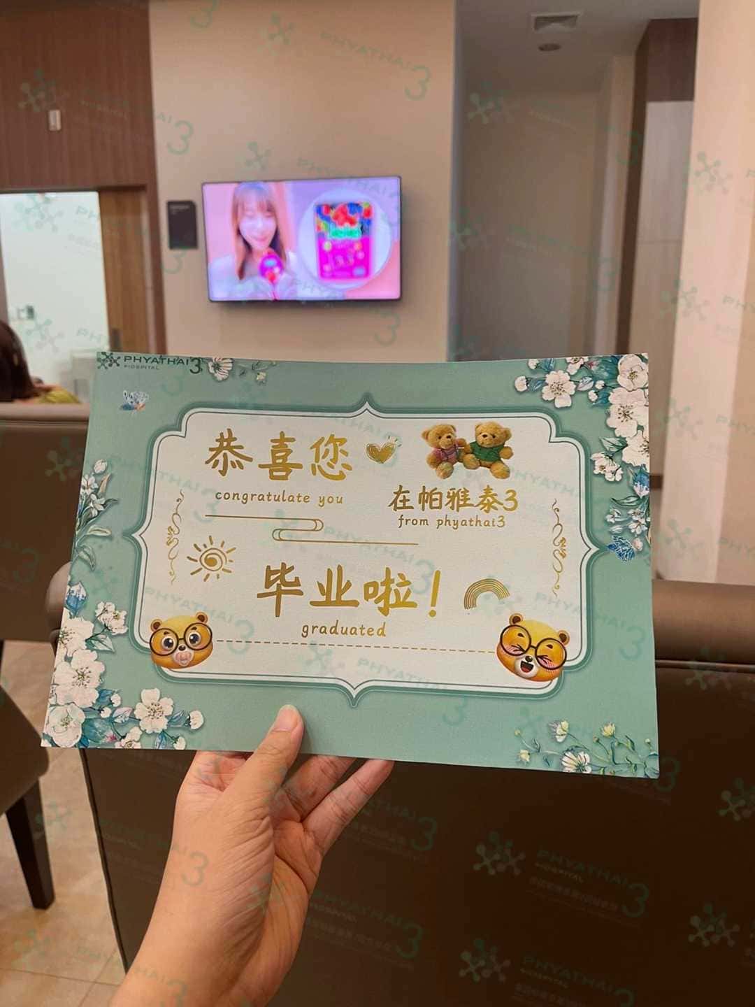 今天是我的患者过来抽血验孕,因为之前一直听说我们姐妹移植后第二天就去逛街了,所以还比较担心我们胚胎有没有着床,但是!我们血值出来后所有人都非常开心快乐,那种紧张不安全部都烟消云散,也终于把我们的恭喜您在帕雅泰3毕业的毕业贺卡亲自送到了患者手术,与我而言是非常开心,幸福的,愿我们的两个小宝宝一直健康茁壮成长噢