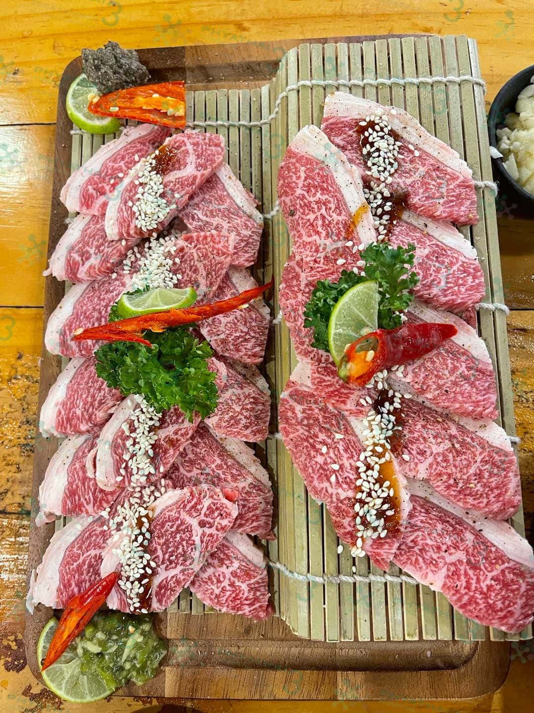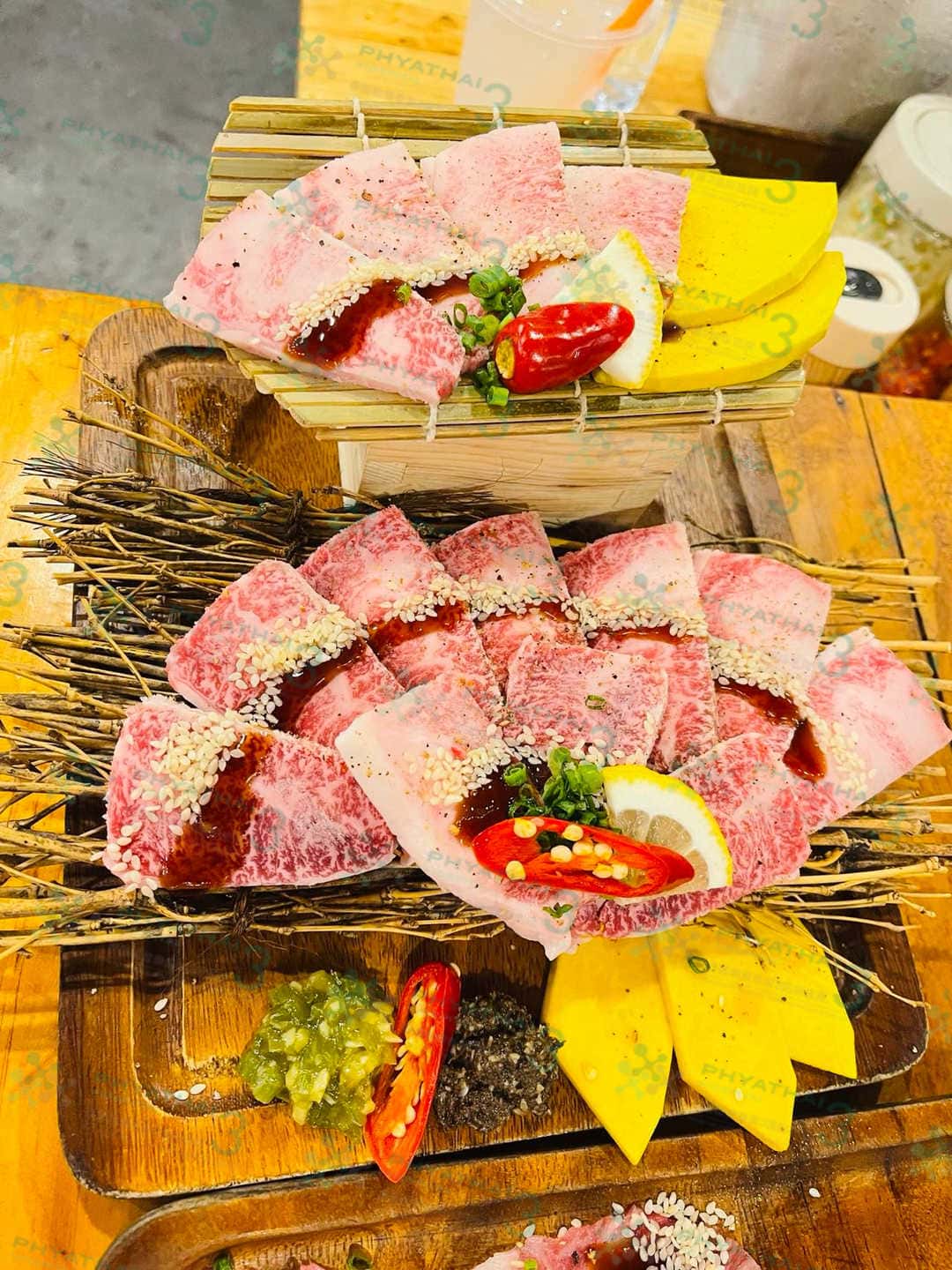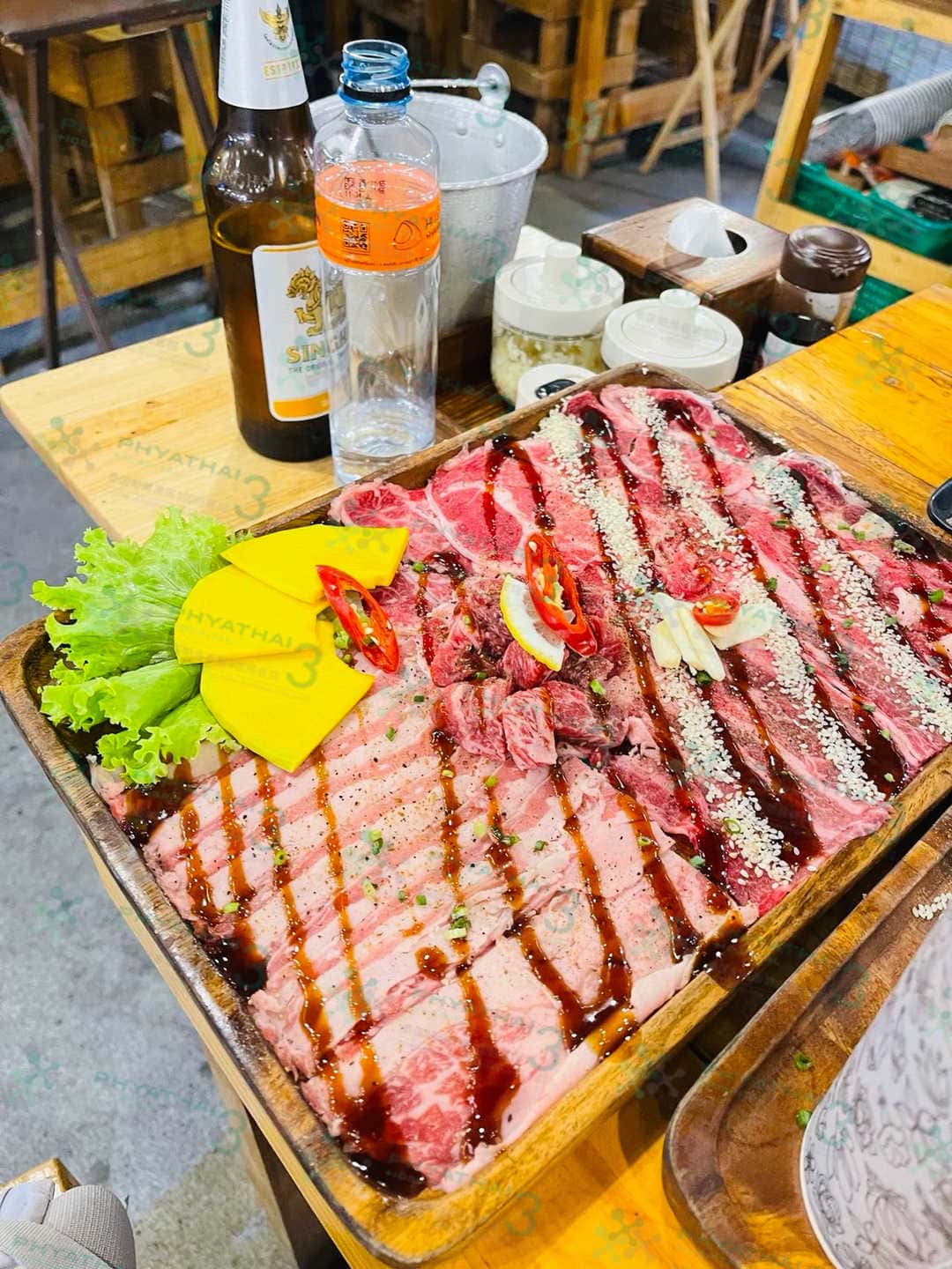 给各位姐妹们再推荐一家好吃不贵的烤肉店。这家店位于华马夜市(ตลาดหัวมุม),店名叫T-wagyu beef。推荐姐妹们可以点一个689泰铢的拼盘套餐,里面包含了蔬菜和米饭哦,还能额外再点一到两份和牛哦,肉质很新鲜很不错,绝对值得一试[爱意][爱意] 对了,有名的猛男餐厅也在这个夜市哦,嘿嘿各位姐妹可以在google 地图里搜索huamum market 就找得到啦