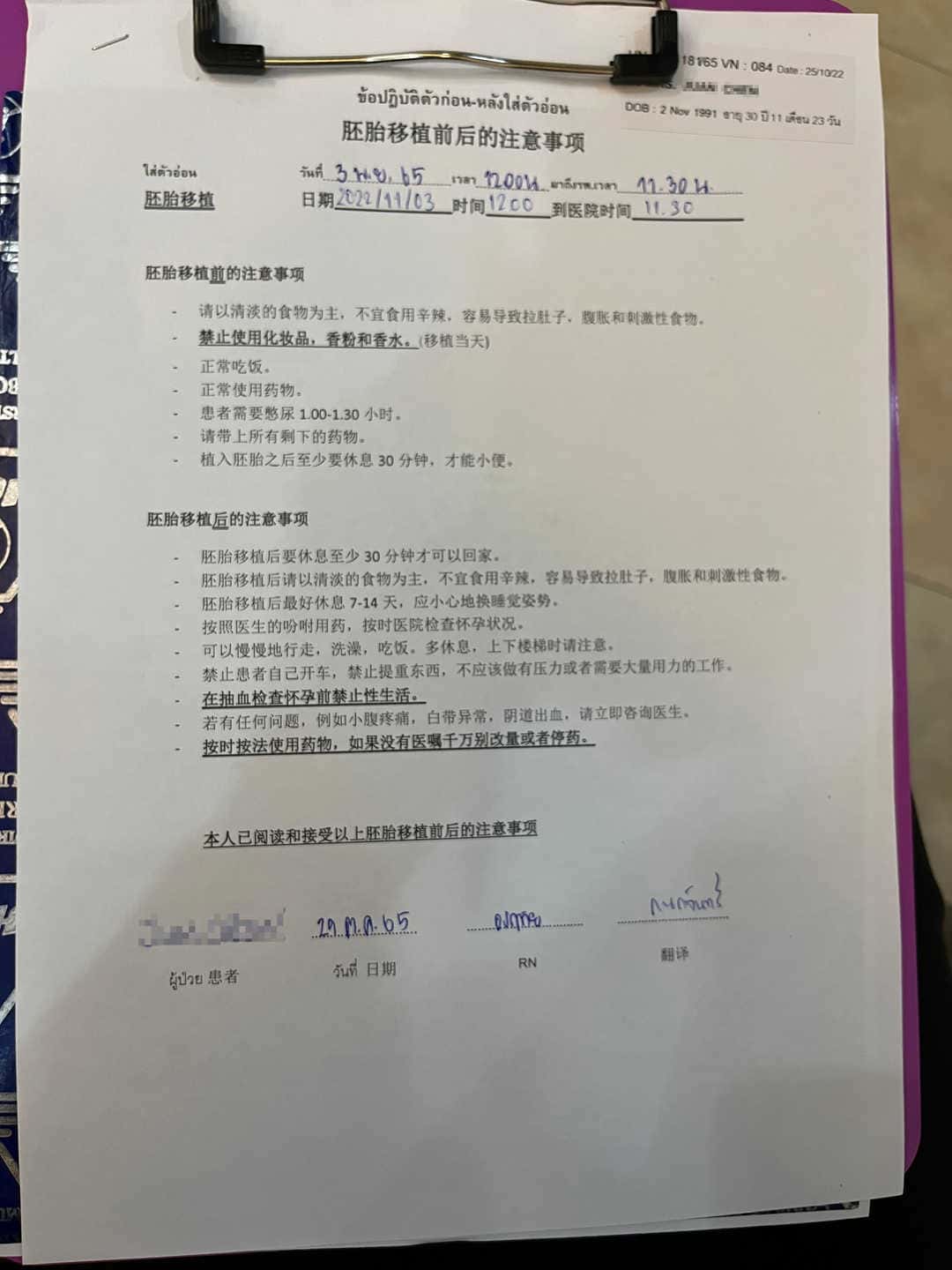 今天是患者移植前的第二次见诊 ~ 医生做阴超检看患者的子宫内膜情况今天内膜三线很清晰而且厚度也达到可以移植的达标了 因为患者定时的准时用药所以内膜长得很好 医生跟患者确认好了我们要移植几个胚胎 确定移植日期 给患者准备好了移植前后注意事项 而且还给患者开了我们关于孕酮的激素药 期待着下个星期移植顺顺利利 接好孕