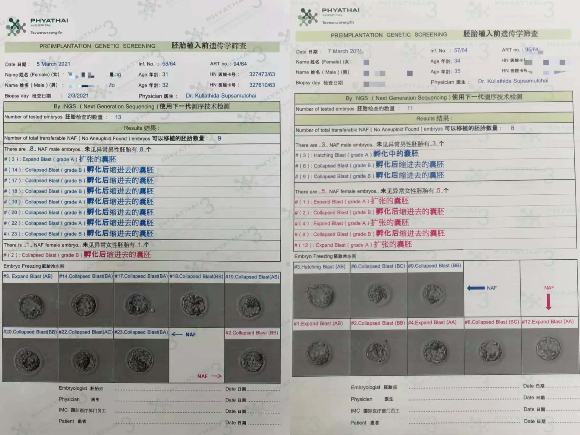 △近期筛查报告一览(格内胚胎均为健康可移植)